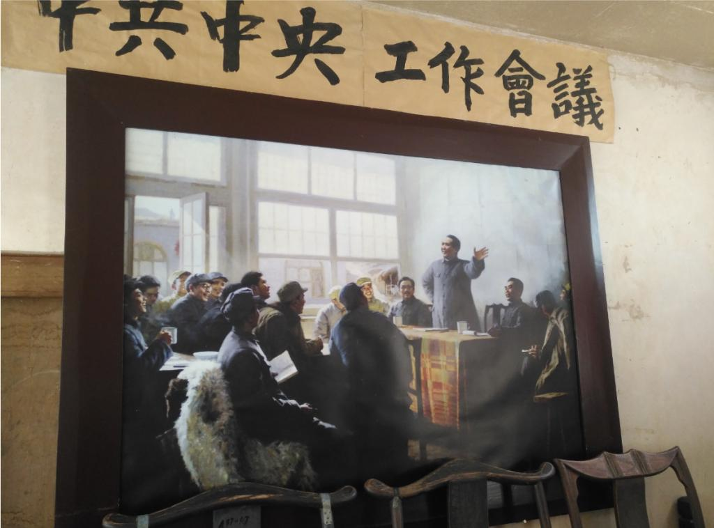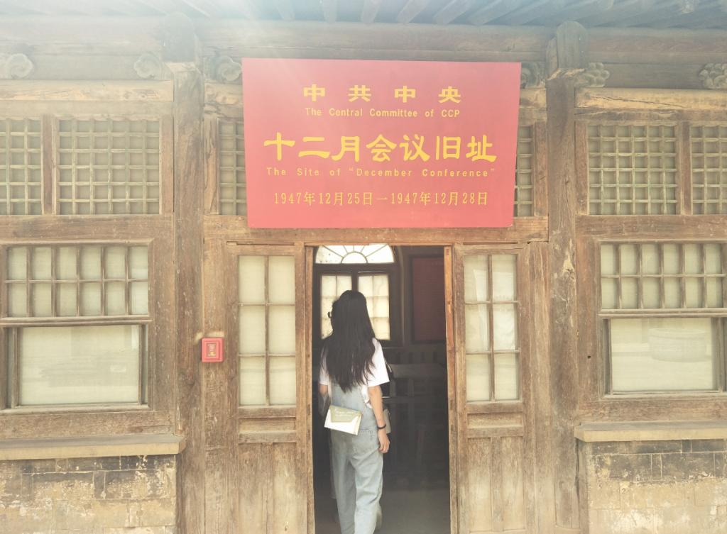 第一站,实践队抵达十二月会议旧址,进行了参观学习。十二月会议旧址是晚清四合院窑洞建筑,院子正中倒座七间砖木结构硬山式建筑,是十二月会议旧址,正面5孔窑洞及东西两侧的6孔厢窑为叶子龙、汪东兴等同志的办公室及后勤处办公室。1947年12月25日至28日,毛泽东、周恩来、任弼时在此共同主持召开了“中共中央工作会议”,史称"十二月会议"。会上,毛泽东主席作了题为《目前形势和我们的任务》重要报告。