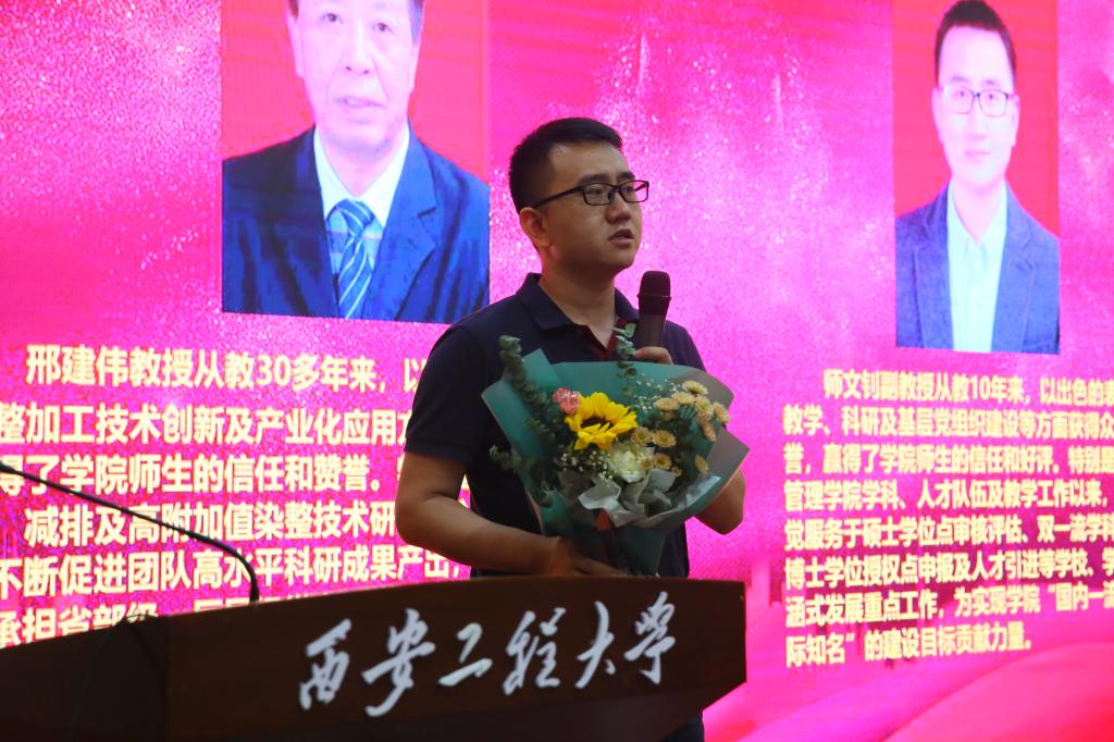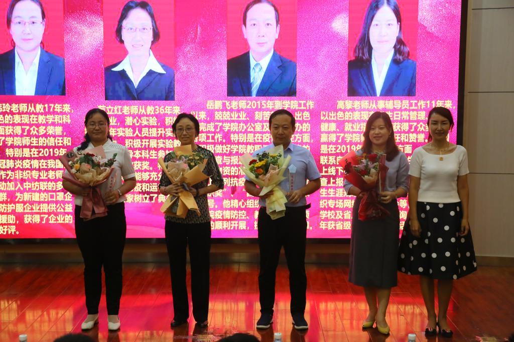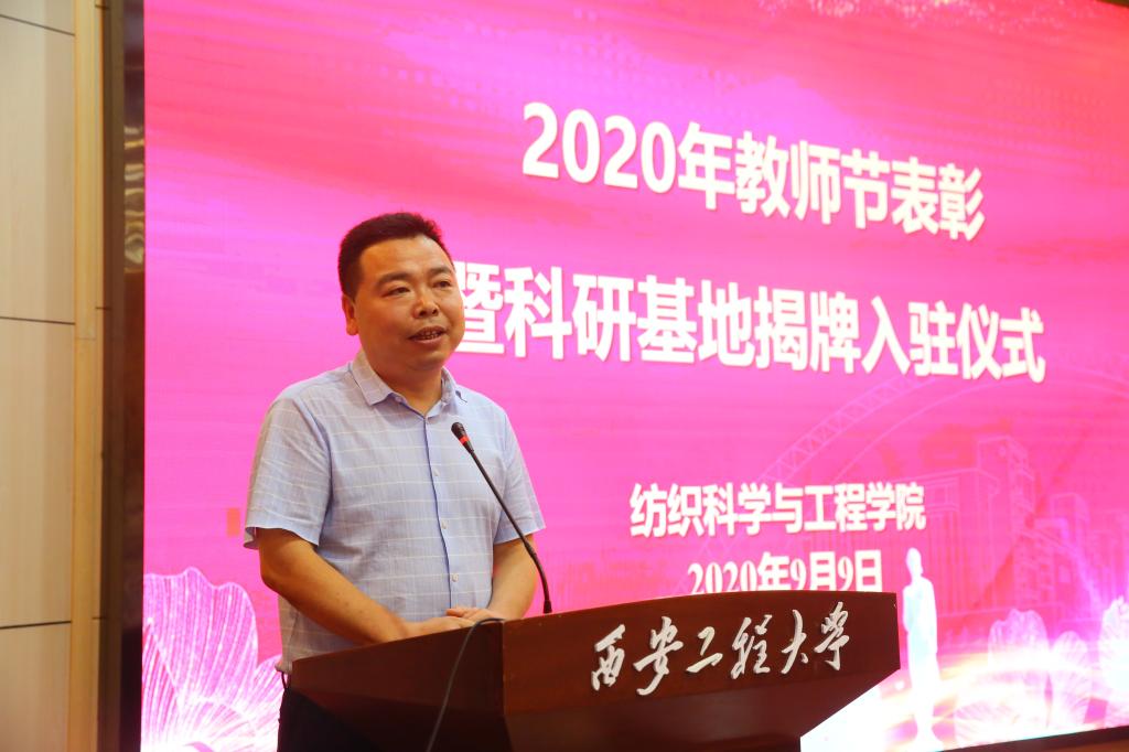 胡小进代表公司党政工对一直以来给予纺织公司大力支持和帮助的公司各位领导和部门表示衷心的感谢!对一年来在教学科研管理服务中付出大量辛劳的全院教职员工表示诚挚的敬意!祝大家教师节快乐!对公司一年来在教学、科研、学科、团队队伍、党建、员工工作及疫情防控等方面取得的成绩进行了汇报,并宣读了公司对2019-2020学年在教学科研、团队建设、团队建设、疫情防控等方面做出突出贡献的12名优秀教师进行表彰的决定。