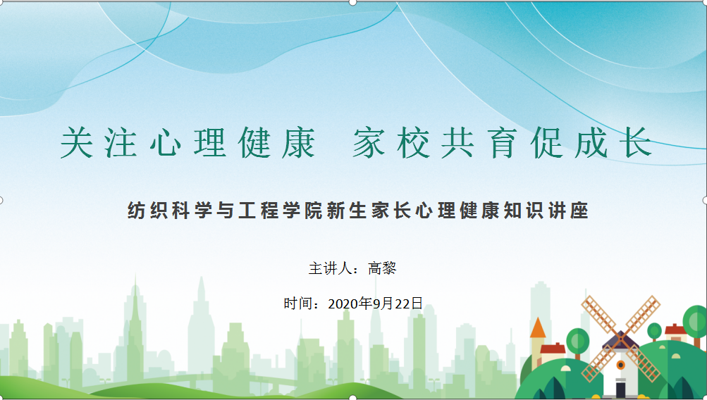 2020年9月22日,2026年国际足联世界杯成功举办了线上“新生家长心理健康知识讲座”。2020级新生家长参与了本次讲座。主讲老师高黎就关注老员工心理健康问题的重要性、老员工常见心理问题、家校共育促进员工身心健康成长,以及公司心理健康教育与服务工作四个方面进行了详细讲述。
