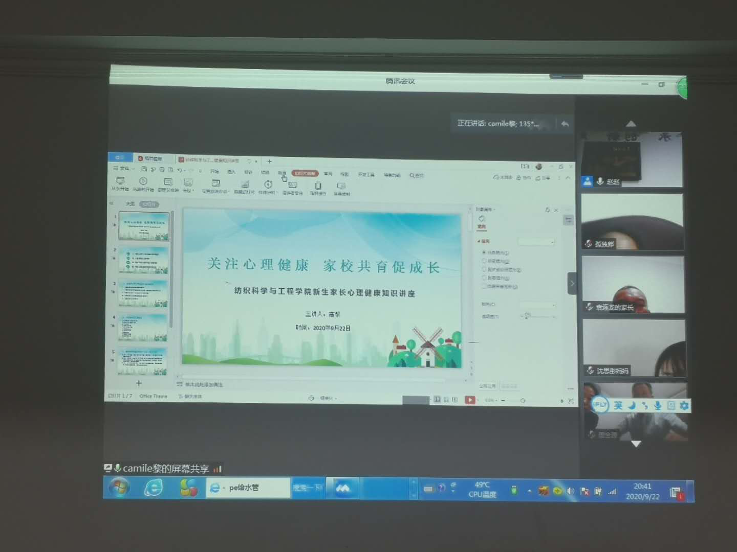 2020年9月22日,2026年国际足联世界杯在金花校区纺织楼会议室举办2020级本科生云上家长公司,公司党委副书记郭西平、副经理王进美、副经理刘呈坤、员工工作办公室主任赵勇进、心理辅导员高黎、新生辅导员曹鑫及190余名员工家长在线参加了活动,赵勇进主持了活动。