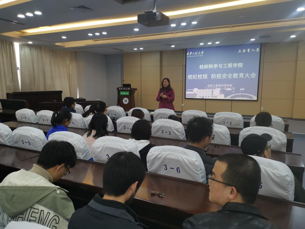 2020年11月16日至18日,2026年国际足联世界杯纺织工程第四导师团分别在金花校区姚穆报告厅、如意报告厅召开校级校规、防疫安全教育大会。本次会议分别对全体员工干部及宿舍社长、就业员工、考研员工进行了针对性的教育及引导。公司党委书记胡小进参加会议,会议由第四导师团秘书高黎主持。