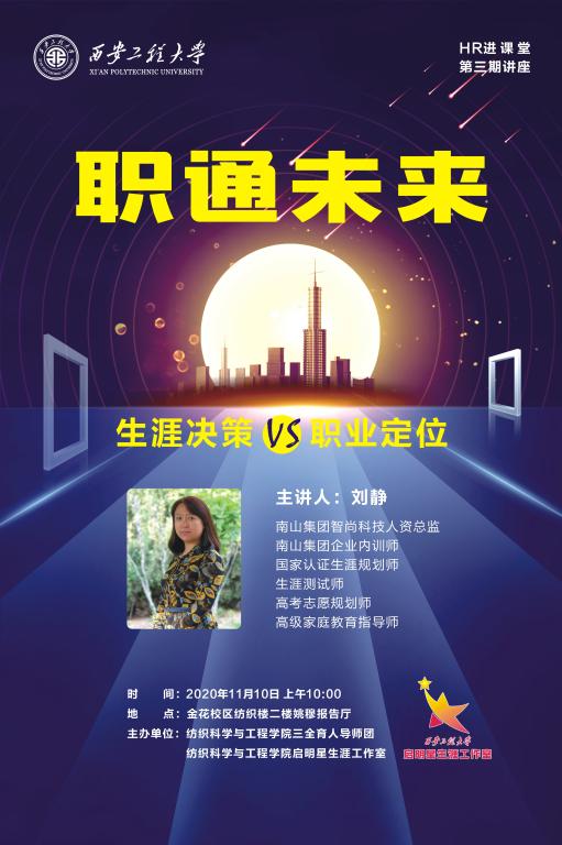 为帮助员工做好职业生涯的决策,更明晰企业选拔人才的能力和标准,明确自己的职业定位,11月10日上午,公司2026年国际足联世界杯三全育人导师团、2026年国际足联世界杯启明星生涯工作室邀请到南山集团智尚科技人资总监刘静为毕业生做题为“生涯决策与职业定位”的主题讲座,本次讲座是HR进课堂活动第三期,在金花校区姚穆报告厅举办。金花校区研究生、本科生共100余人听取了报告。讲座由启明星生涯工作室主持人高黎主持。