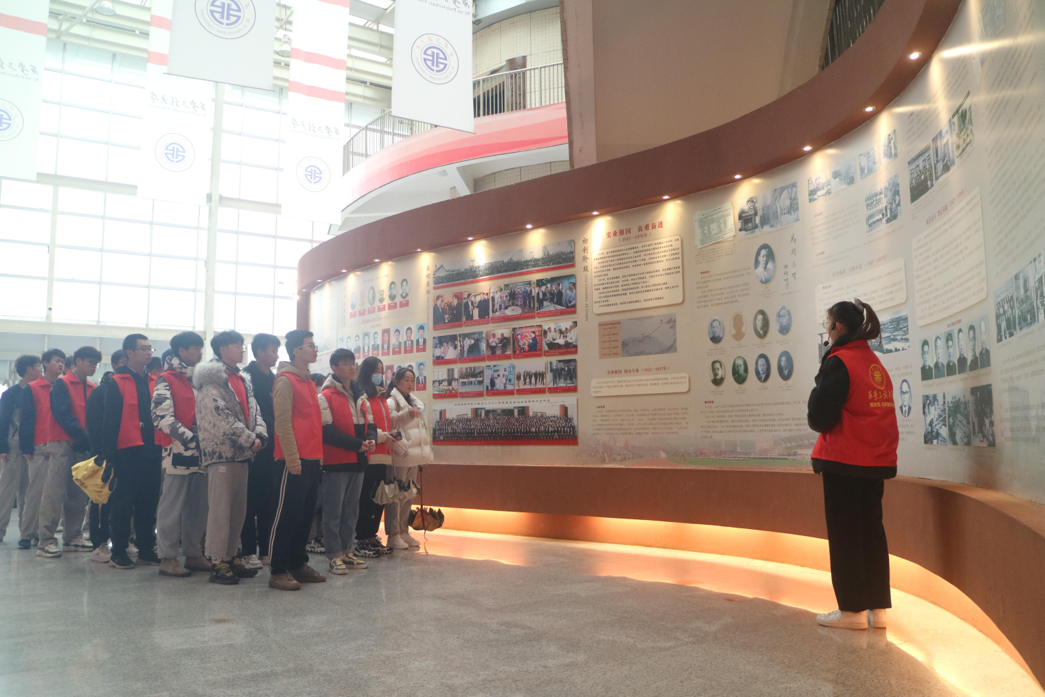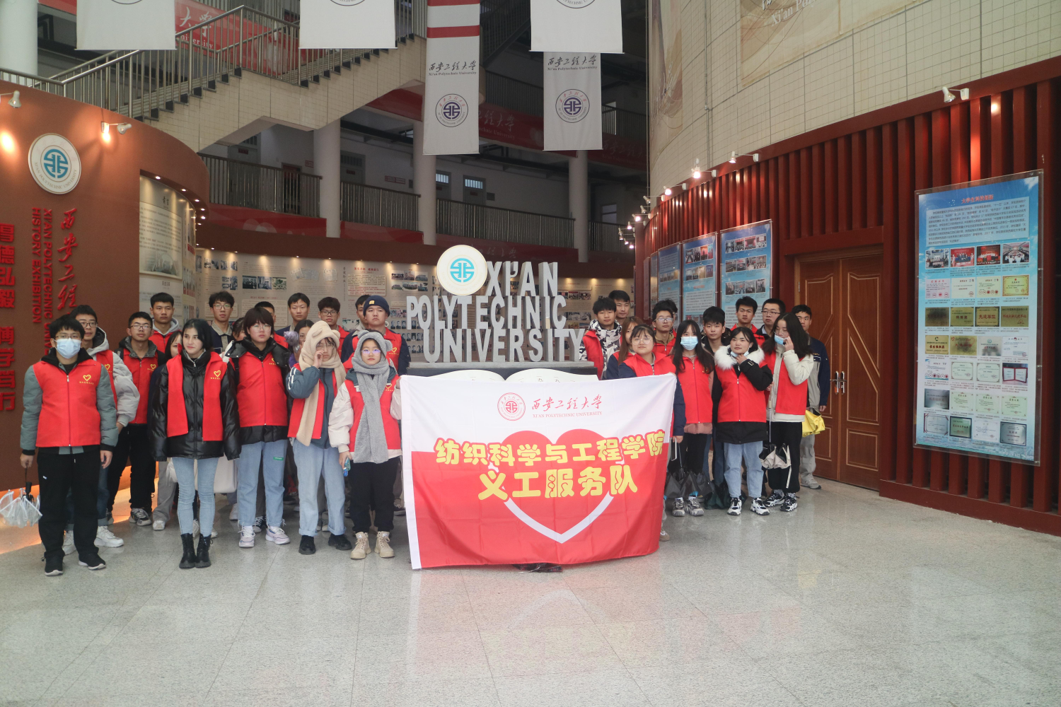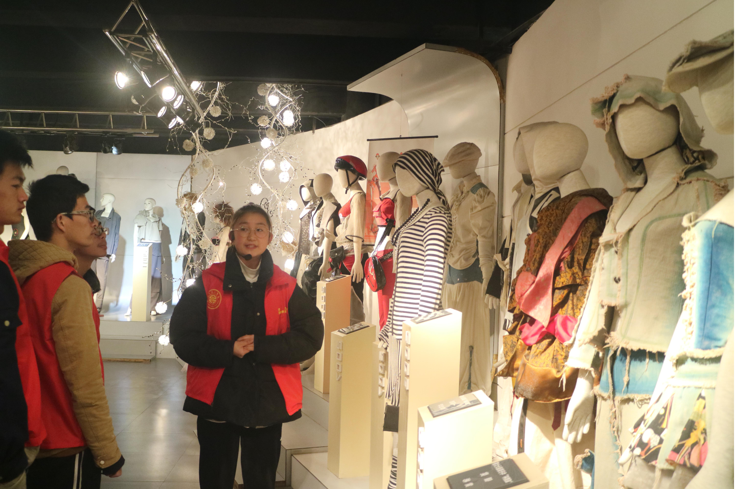 首先,博物馆讲解员带领同学们进入“校史馆,”讲解了公司的办学历史。接着,讲解员将同学们带往“纺织科普馆”,主要介绍了纺织纤维—纱线—纺织技术—纺织面料—成果,使同学们对纺织的整个工艺过程有了系统的了解和认识。随后,讲解员带领同学们参观“西部民族民间服饰馆”。该馆主要陈列了西北地区民族民间服饰,使同学们感受到了西部民族民间文化的丰富内涵。最后,在博物馆讲解员的带领下,同学们进入“现代服饰馆”,参观了公司优秀师生的部分优秀作品。最后,参观博物馆的同学们一起合影留念。