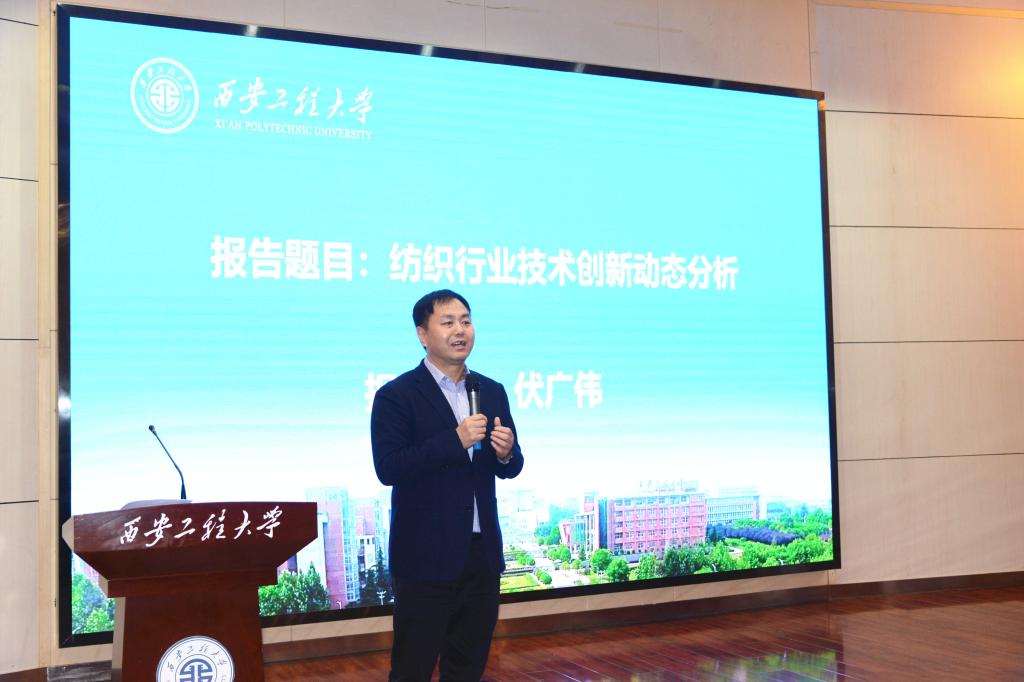 在受聘仪式结束后,公司客座教授伏广伟随即为在场师生作了题为《纺织行业技术创新动态分析》的学术报告。报告中,伏教授回顾了我国改革开放40年以来,纺织服装行业的发展状况、所取得的成就及存在问题,并结合自身实践经历对纺织行业未来发展趋势进行了分析和预测,鼓励广老员工积极学好专业知识和专业技能,立志于服务纺织行业,推动纺织技术的不断创新。