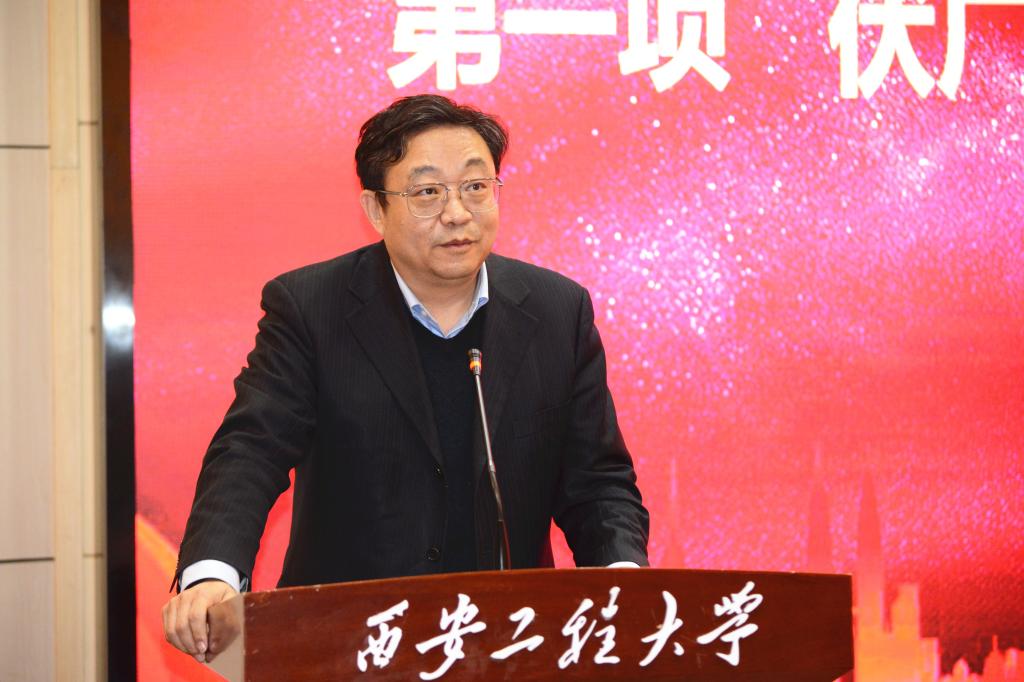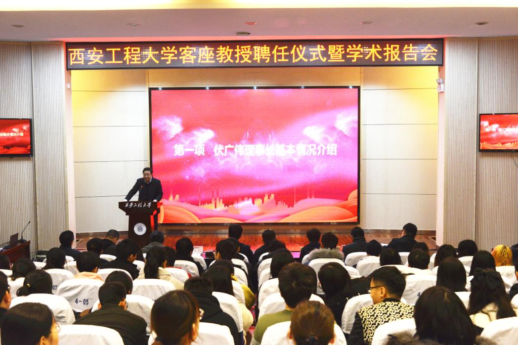 在客座教授聘任仪式上。首先,李鹏飞代表公司对出席本次会议的中国纺织工程学会的各位专家领导表示热烈欢迎和衷心感谢。对本次受聘公司客座教授伏广伟的基本情况进行了介绍。
