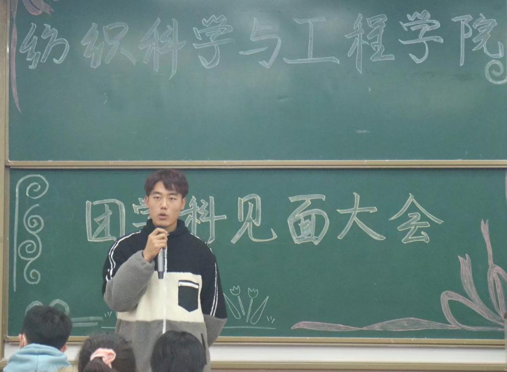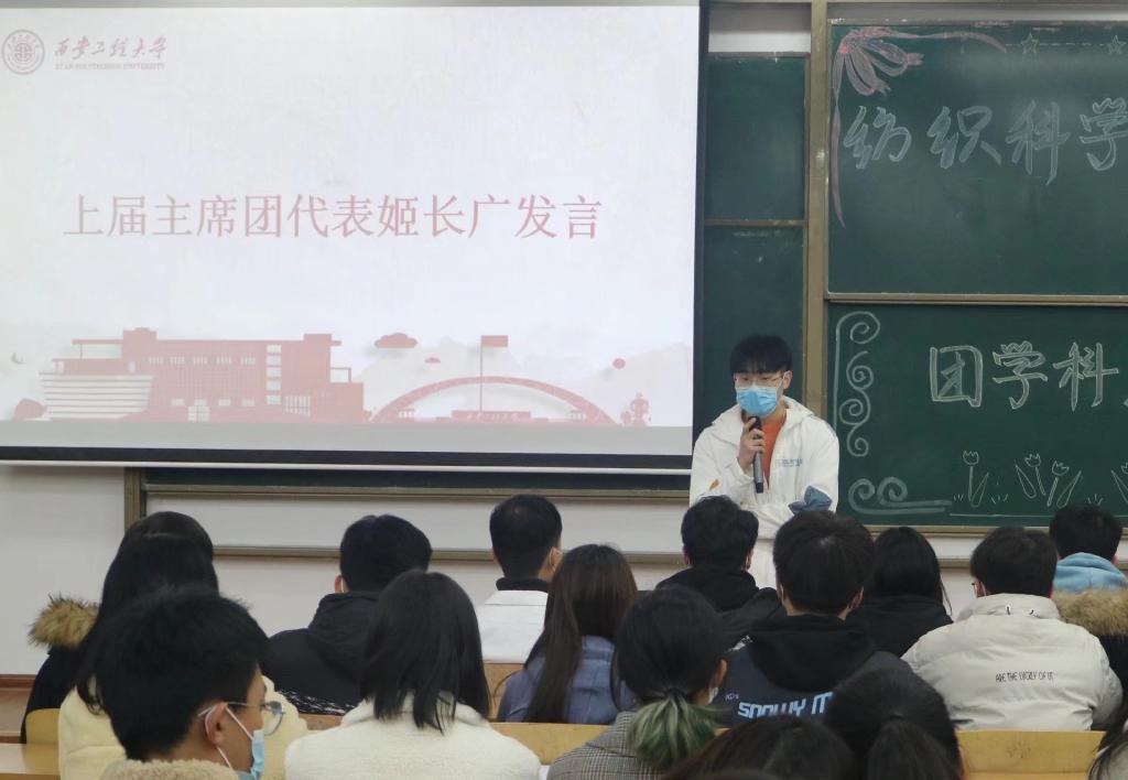 首先,2018级主席团代表姬长广上台发言。他首先对加入团学科的各位干事表示欢迎,希望每位干事都能保持工作热情,及时询问并弥补不足之处。同时,他对2019级员工干部提出要求,要求他们以身作则,起好榜样带头作用。接着,团总支、员工会、老员工科技协会三大组织的各部门负责人依次上台对其职责与部门人员作了介绍,并由2018级主席团代表袁照森、熊亚睿、袁浩翔对上学年各组织的工作作了总结,让干事们能较为全面地了解团学科的结构组成,他们希望每一位干部干事都能努力进取,为纺织公司团学科增光添彩。最后,2019级主席团代表宋鹏程发言。他希望每一位团学科成员都能肩负起各自的责任,保持积极认真工作态度,在团学科这个大家庭中展示自我、发光发热、收获知识与友谊。