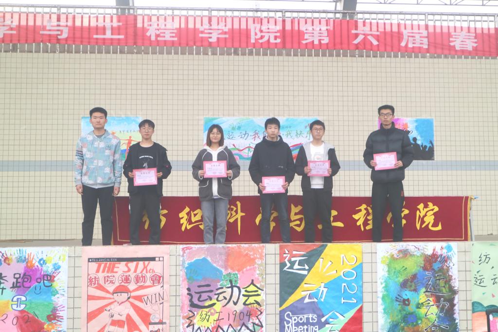 经历激烈角逐,最终2019级班级获奖情况如下:纺织工程3班获得第一名,纺织工程6班和轻化工程1班并列获得第二名,纺织工程卓越2班获得第四名;2020级获奖情况如下:纺织工程1班获得第一名,轻化工程1班获得第二名,纺织工程4班获得第三名,轻化工程2班获得第四名。优秀运动员为2019级轻化工程1班张婉婷、2019级非织造材料与工程杨文豪、2020级纺织工程5班张颖。优秀裁判为2020级纺织工程3班田德乾、2020级纺织工程4班苏智鹏、2020级非织造材料与工程吴子康。
