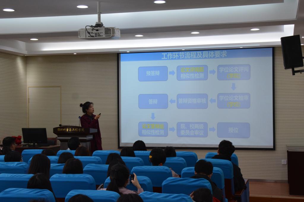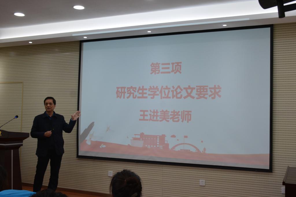 王进美指出研究生论文是研究生期间的主要成果,并从论文创新性、科学分析、图表规范性设计、摘要和结论的撰写四个方面对论文的撰写提出了一些自己的宝贵经验的建议。并说明学术型硕士和专业型硕士的区别:学硕注重科学性,专硕注重实用性。