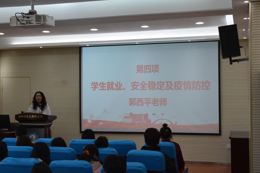 接着,郭西平就研究生就业、安全稳定、疫情防控、日常管理等方面进行了详细强调。她提醒大家要按照好毕业的相关要求和掌握好节奏,合理安排时间,正确对待毕业前各种压力,如果遇到困难及时和导师、辅导员沟通。
