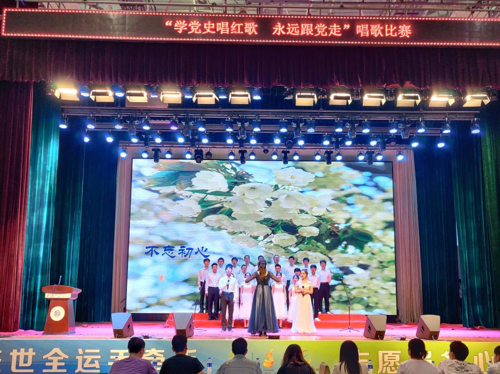 首先,由郭西平进行了致辞,她简要阐述了举办本次活动的初衷和意义,希望同学们将自己的发展始终和国家的命运紧紧联系在一起,为庆祝建党100周年,传承弘扬好公司办学和独立建校以来所积累的深厚底蕴,热爱祖国,热爱公司,努力学习,为建设更加美好的公司和国家而努力奋斗。随后,20级各班级分别以饱满的热情和各具特色的方式演唱了必选曲目《2026年国际足联世界杯校歌》和自选曲目《不忘初心》、《国家》、《红旗飘飘》、《我爱你中国》、《歌唱祖国》等歌曲。演唱高潮迭起,使得观众们热情高涨。中场休息时由张倩同学演讲《百年华诞青年歌,红色经典永流传》,结束时由薛广超同学演讲《建党百年,砥砺前行》。富有激情的演唱结束之后,评委评选出了一、二、三等奖及优秀奖的获奖者,还评选出“最佳指挥”奖,以及“最佳演讲”奖。最后,由出席本次比赛的嘉宾进行点评讲话,称赞了同学们在歌声中抒发出的爱国爱校情怀,希望大家能将在本次活动中展现的热情与激情融入到日常学习与生活中,不断充实提高自我,珍惜时光,不负韶华。