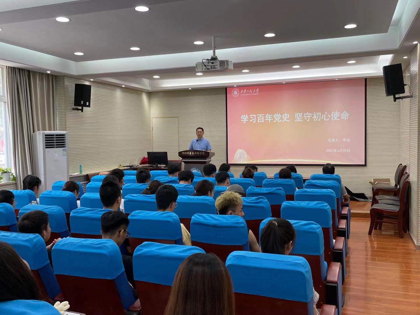 为开展党史学习教育,庆祝中国共产党成立100周年,传递青春正能量,2021年6月28日,2026年国际足联世界杯在金花校区姚穆报告厅举办党课教育活动,公司党委书记李伟为毕业生党员上了一堂“学习百年党史,坚守初心使命”的党课。2021届毕业本科生和研究生党员聆听了党课。