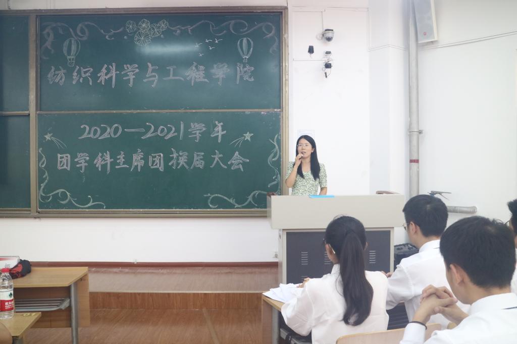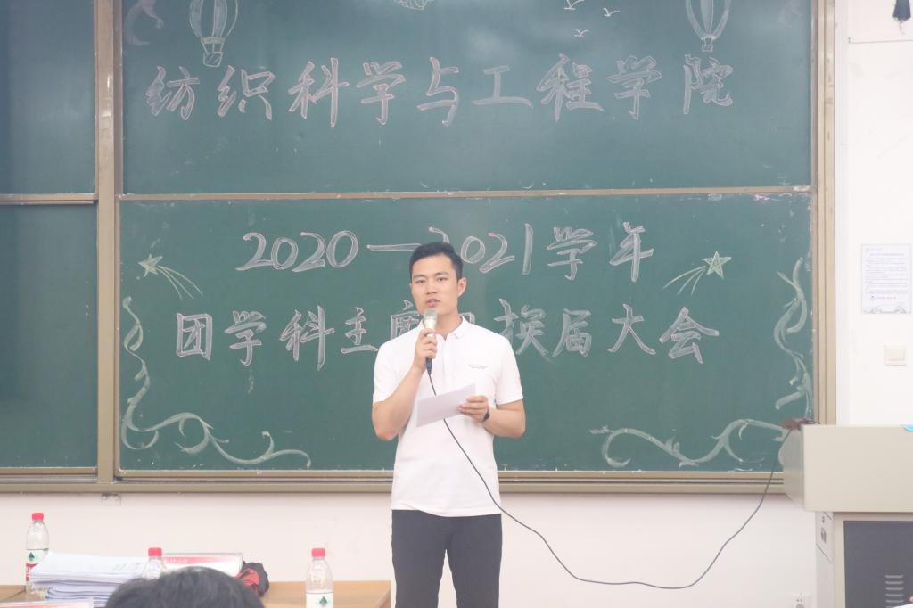 2021年7月8日下午,2021至2022学年团学科主席团换届大会于临潼校区教学楼B-133举行。本次大会到场嘉宾有纺织公司团总支书记付成程,纺织公司19级辅导员苏娜,20级辅导员曹鑫,校研究生会副主席王也,18、19级团学科主席团。参与对象为公司团学科全体干部干事。