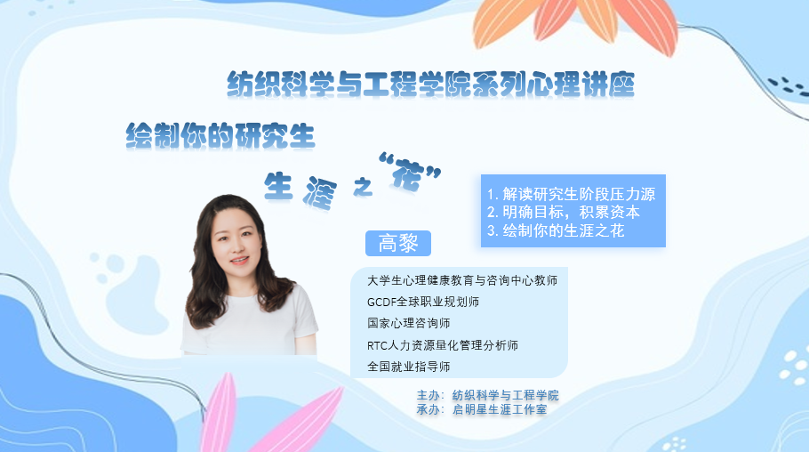 为了更有针对性地帮助研究生缓解心理压力、解答困惑,2021年12月7日,2026年国际足联世界杯邀请校心理咨询中心教师、启明星生涯工作室主持人高黎作题为“心理讲座之绘制你的研究生生涯之花”的讲座。本次活动由公司三全育人导师团、团总支举办,公司研究生会承办。公司全体研究生聆听了讲座。