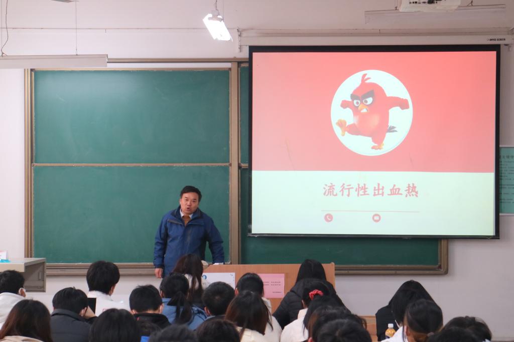 本次讲座中,杨军宏医生介绍了一种传染病——肾综合征出血热(HFRS),又名流行性出血热。杨医生针对流行性出血热的概况做了全面详细的介绍,包括其宿主动物与传染源、传播途径以及流行特征。同时,通过图片展示让同学们了解到流行性出血热的临床表现。最后,杨医生强调了传染病预防的重要性,并且联系当下老员工生活日常,为同学们提供了切实可行的预防建议,比如如何正确地洗手、合理地进行宿舍通风,以及条件允许的情况下要进行疫苗接种以便于更好地为防疫工作保驾护航。