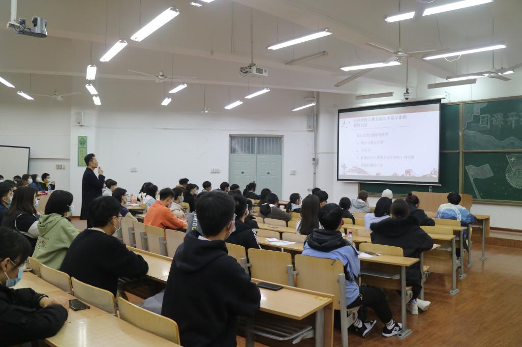 开班仪式结束后,曹鑫以《弘扬五四精神,坚定制度自信》为题开展了团校培训第一讲。他以2019年至今都在席卷世界的新冠疫情为例,提出中国人民在没有硝烟的战场上同样齐心协力,众志成城,取得抗疫阶段性胜利,离不开党组织和团组织的正确领导。尤其强调了正是因为我们国家有这样一群优秀的青年才能在疫情防控阻击战中取得阶段性的胜利。他希望当代青年要勇敢肩负起时代赋予的重任,志存高远,脚踏实地,努力在实现中华民族伟大复兴的中国梦的生动实践中放飞青春梦想。