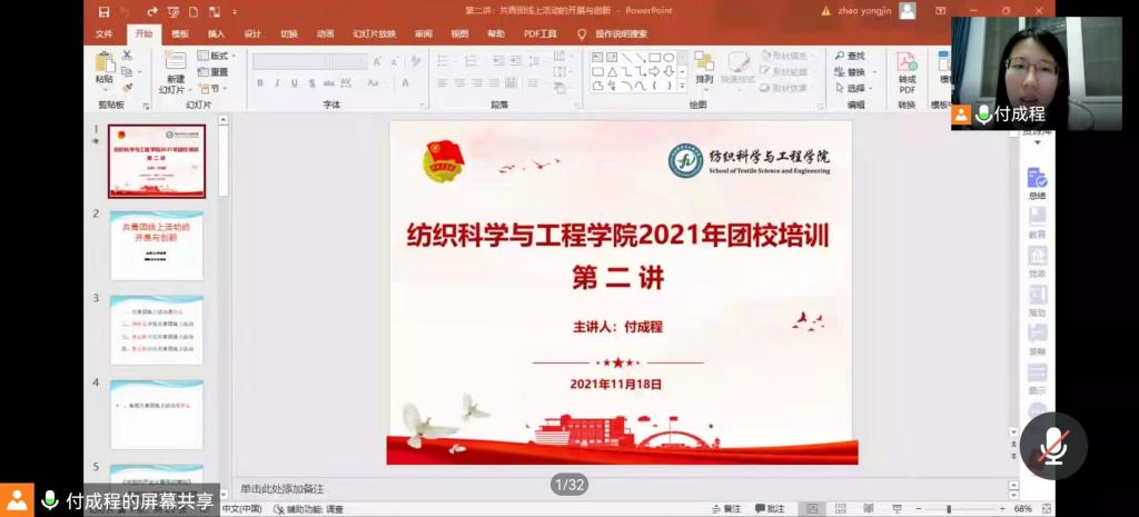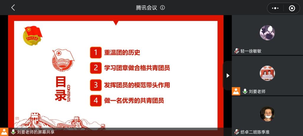 随后,公司按计划开展了一期线下团课和两期线上团课,线下团课由2019级辅导员苏娜主讲,线上团课由2021辅导员刘要和团总支书记付成程主讲。苏娜简要介绍了团的历史,说明了共青团在不同时期有不同的历史任务,并强调中国共产主义青年团是中国共产党的助手和后备军。刘要带大家重温团的历史,学习团章,并指出要想做一个合格的共青团员,必须具备有理想、肯付出、不保守、敢担当的优秀品质。付成程指出了开展共青团线上活动的原因及如何进行活动策划,并指出团干部应具备过硬的政治能力、较强的学习能力、优秀的表达能力和良好的组织能力。
