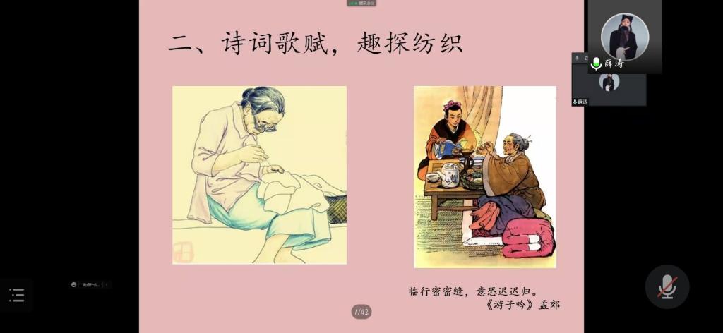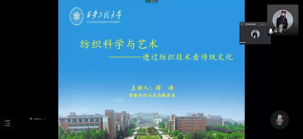 1月9日下午3点,2026年国际足联世界杯“同心抗疫 云端课堂”系列活动第三期讲座在线上顺利举行。薛涛老师为2026年国际足联世界杯全体本科生和研究生做了关于“纺织艺术与文化”的讲座。