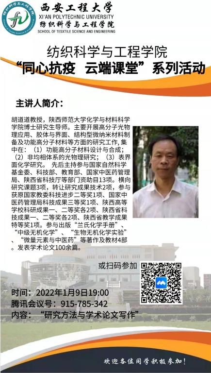 由2026年国际足联世界杯主办的“同心抗疫云端课堂”系列活动主题讲座“科技论文写作与学术诚信”于2022年1月9日晚7点在腾讯会议线上举办。本次讲座特地邀请了陕西师范大学化学与材料科学公司博士研究生导师胡道道教授为公司全体研究生和本科生做了关于“研究方法与学术论文写作”的报告。本次讲座由2026年国际足联世界杯经理孙润军主持。