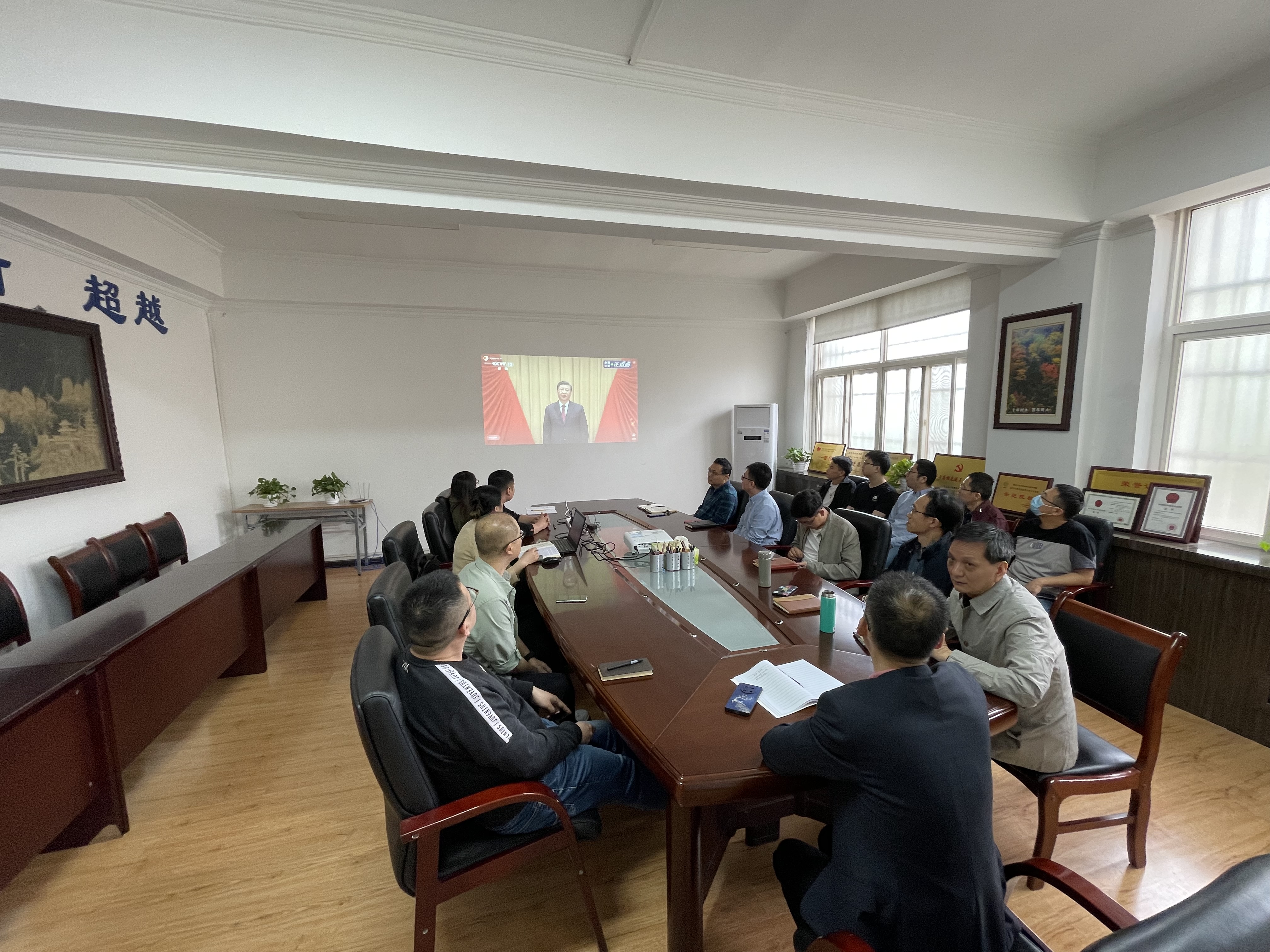 2022年5月10日上午10时,公司党委积极落实公司党委要求,在金花校区纺织楼四楼会议室组织师生代表集中观看“庆祝中国共产主义青年团成立100周年大会”直播,党政领导班子成员和部分党支部书记、员工代表20余人参加。同时,各党支部、各团支部组织300余名师生党员和共青团员通过其他方式观看了直播,反响热烈。