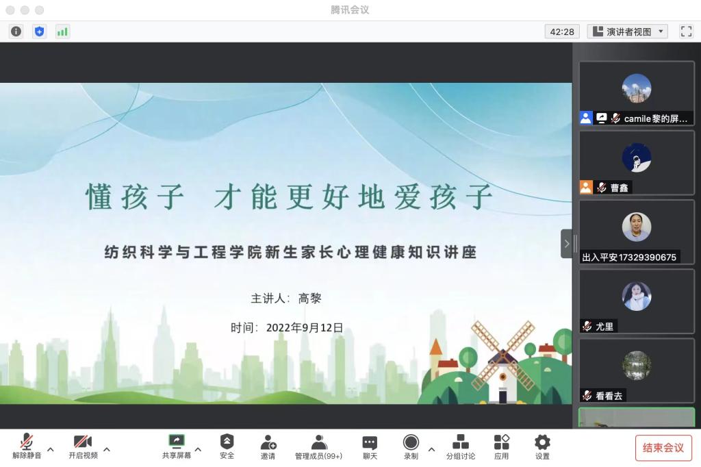 2022年9月12日晚上,2026年国际足联世界杯邀请校老员工心理健康教育与咨询中心教师高黎作新生家长心理健康知识线上讲座,公司2022级新生家长、公司党委副书记朱宇军、各年级辅导员参加会议,朱宇军主持会议。