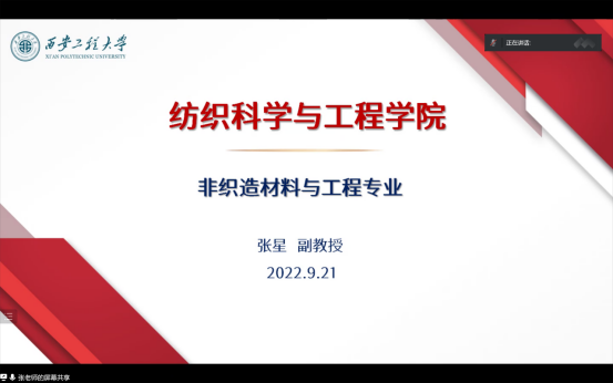 轻化工程专业负责人王雪燕教授作轻化工程专业介绍。主要讲述了轻化工程的专业发展、专业方向、课程设置及学习内容、就业去向及学习建议,引导新生思考如何将专业知识与教育研究相结合、将个人发展与国家建设相结合。