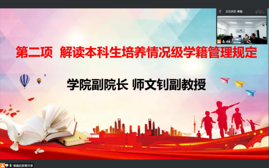 最后,2022级本科生辅导员邓恩征介绍公司本科生管理相关规定,以期实现对员工的高效管理和维护良好的教学秩序,最终促进员工德智体美劳全面发展。