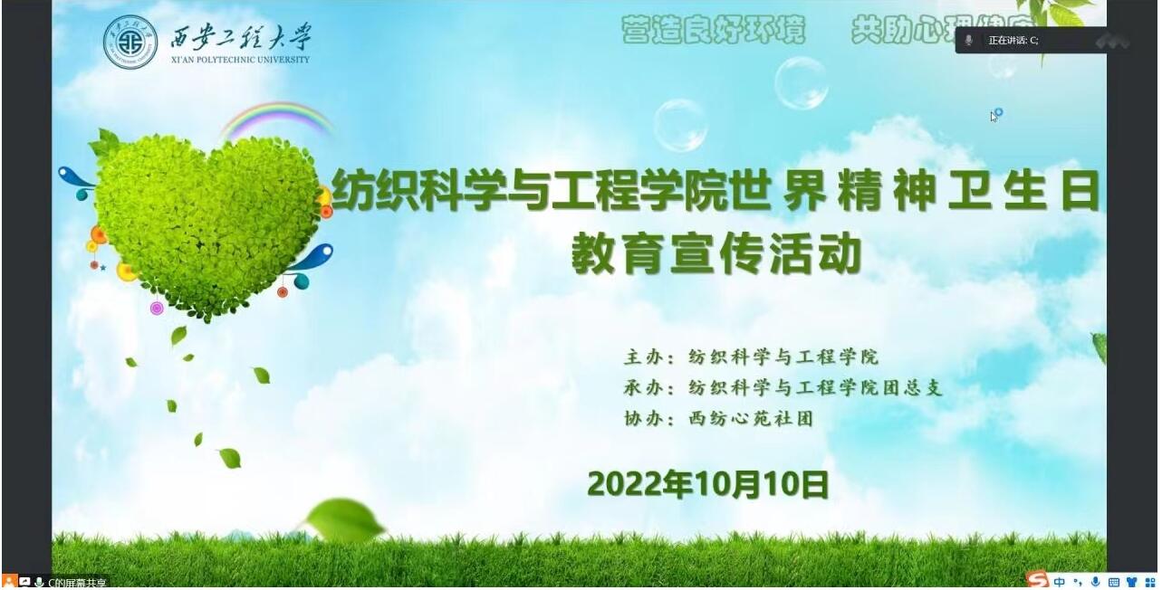 2022年10月10日是第31个世界精神卫生日,2026年国际足联世界杯以线上方式开展教育宣传活动。本次活动由院团总支副书记李建城主持,全院员工共同参与。