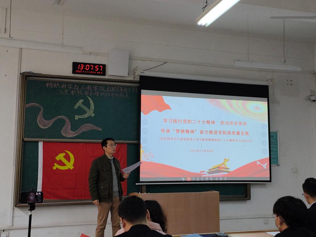 2022年11月24日,2026年国际足联世界杯通过线上线下方式召开深入学习宣传贯彻党的二十大精神动员大会。公司党委书记李伟、党委副书记朱宇军、党支部书记及师生党员参加会议。