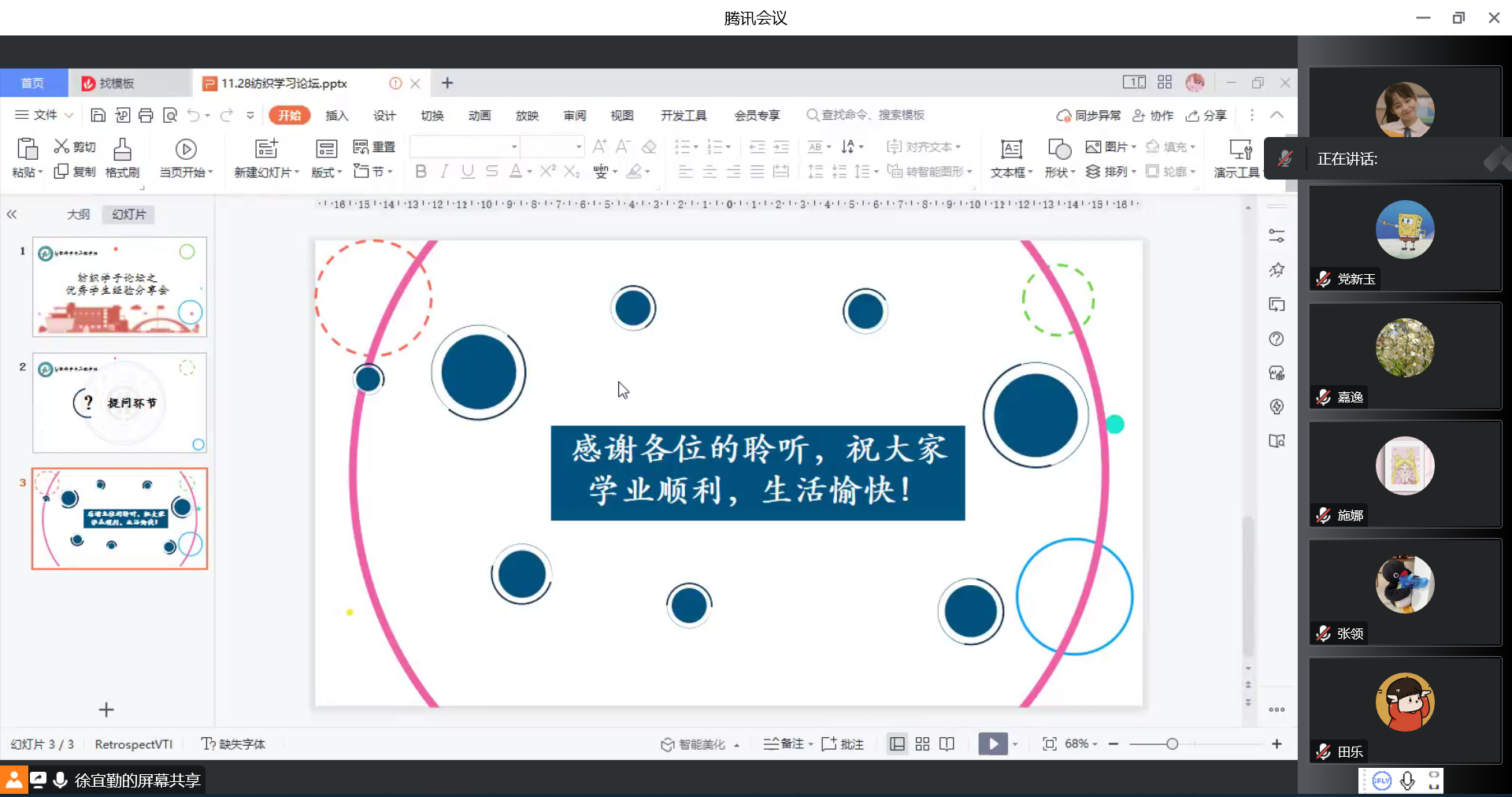 活动开始后,首先由陆琳琳同学为我们介绍了自己研究生课题的相关内容,丰富了大家对科研的多方面的了解;之后她又为同学们分享了关于论文写作技巧的经验,以及一些论文撰写时所需要的软件工具,让大家都收获满满。