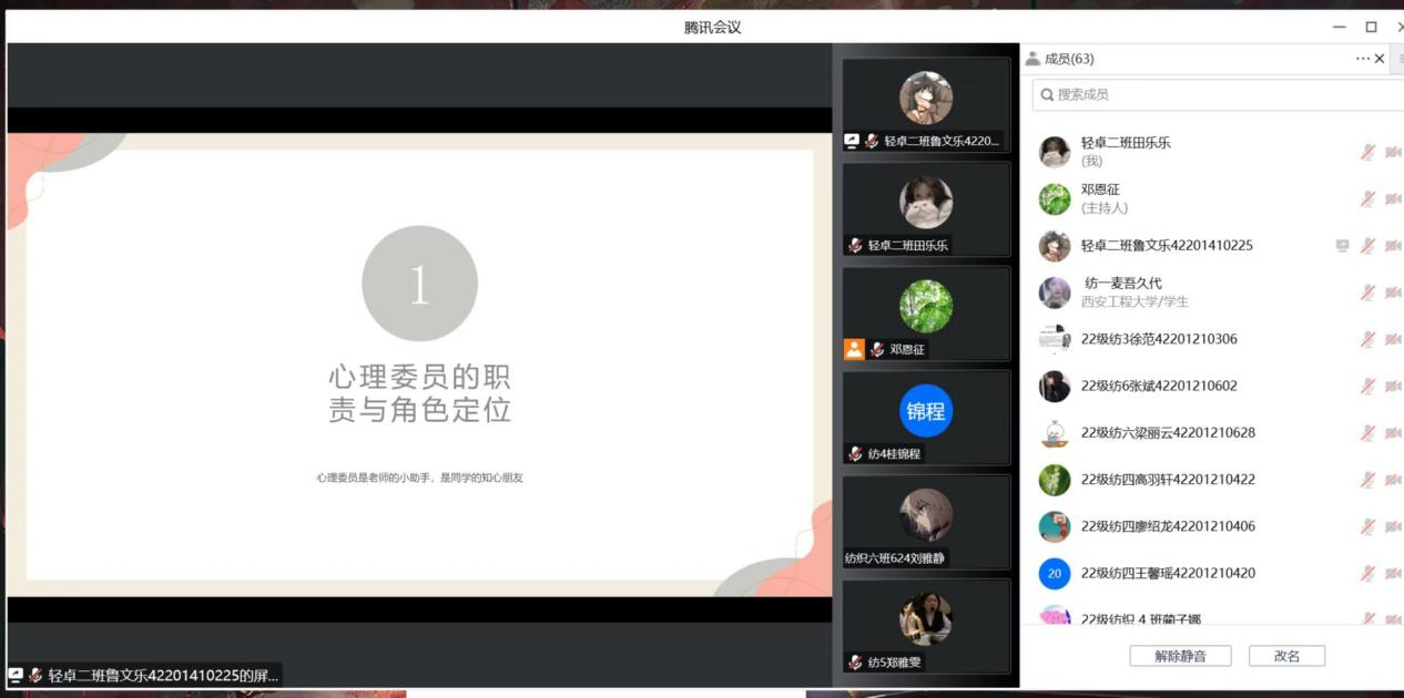 培训会上心理辅导员邓恩征老师首先与各班心理委员进行了简单的交流,强调心理委员们要加强关心班级同学的情绪波动和心理异动情况,提高自身专业素质与能力,发挥好桥梁枢纽作用。并从心理委员的工作意义、工作职责、心理健康与咨询常识、如何做好心理委员工作这四个方面进行详细讲解。邓老师通过阐述以及PPT内容的展示,使各班心理委员进一步明确班级心理委员的工作内容,同时普及相关心理知识,以及如何去解决同学们的心理问题和面对不同心理隐患时应当采取的不同心理援助。