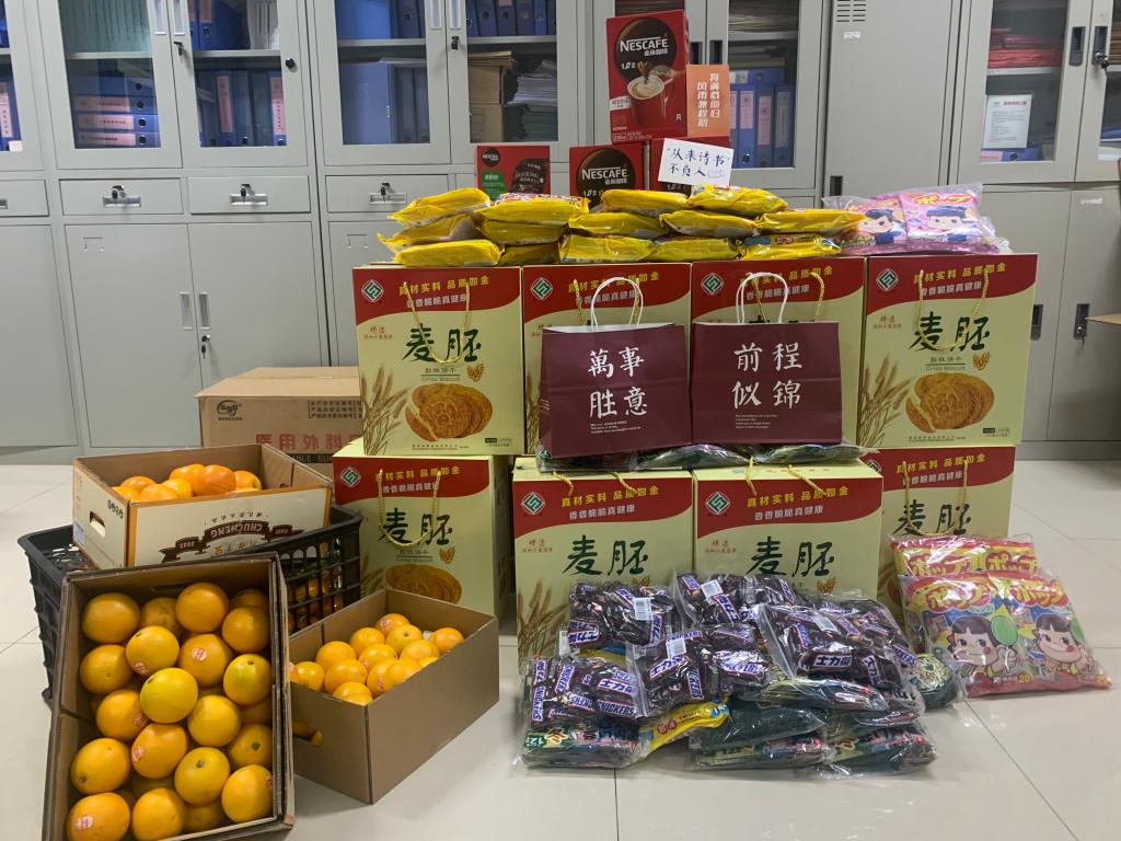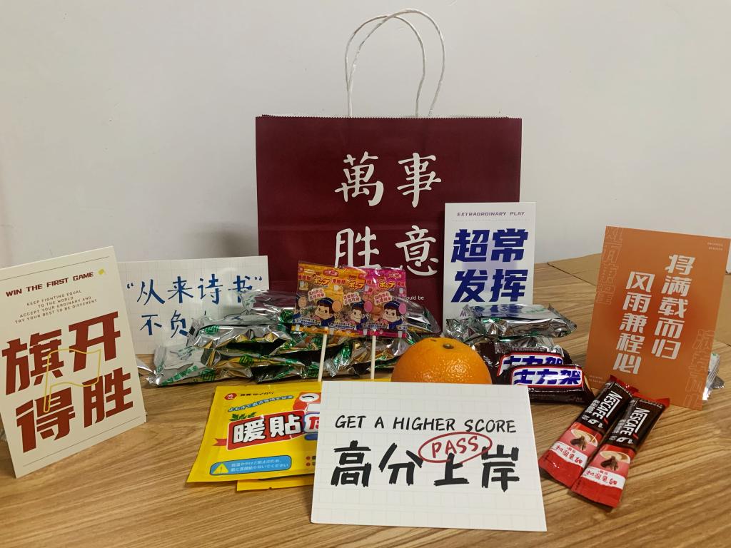 首先,朱宇军向考研员工强调,在最后的关键时期一定要保持良好心态,她向大家介绍了公司为140余名考研员工准备的考研福袋。福袋里有脐橙,寓意“旗开得胜,马到成功”;棒棒糖寓意“榜上有名”,还有暖宝宝、士力架、咖啡、幸运挂件、加油卡片、饼干。这些小礼品都有美好的寓意,更是饱含了公司老师的殷殷期盼和满满祝福,希望同学们都能考上理想的公司,一战成硕。