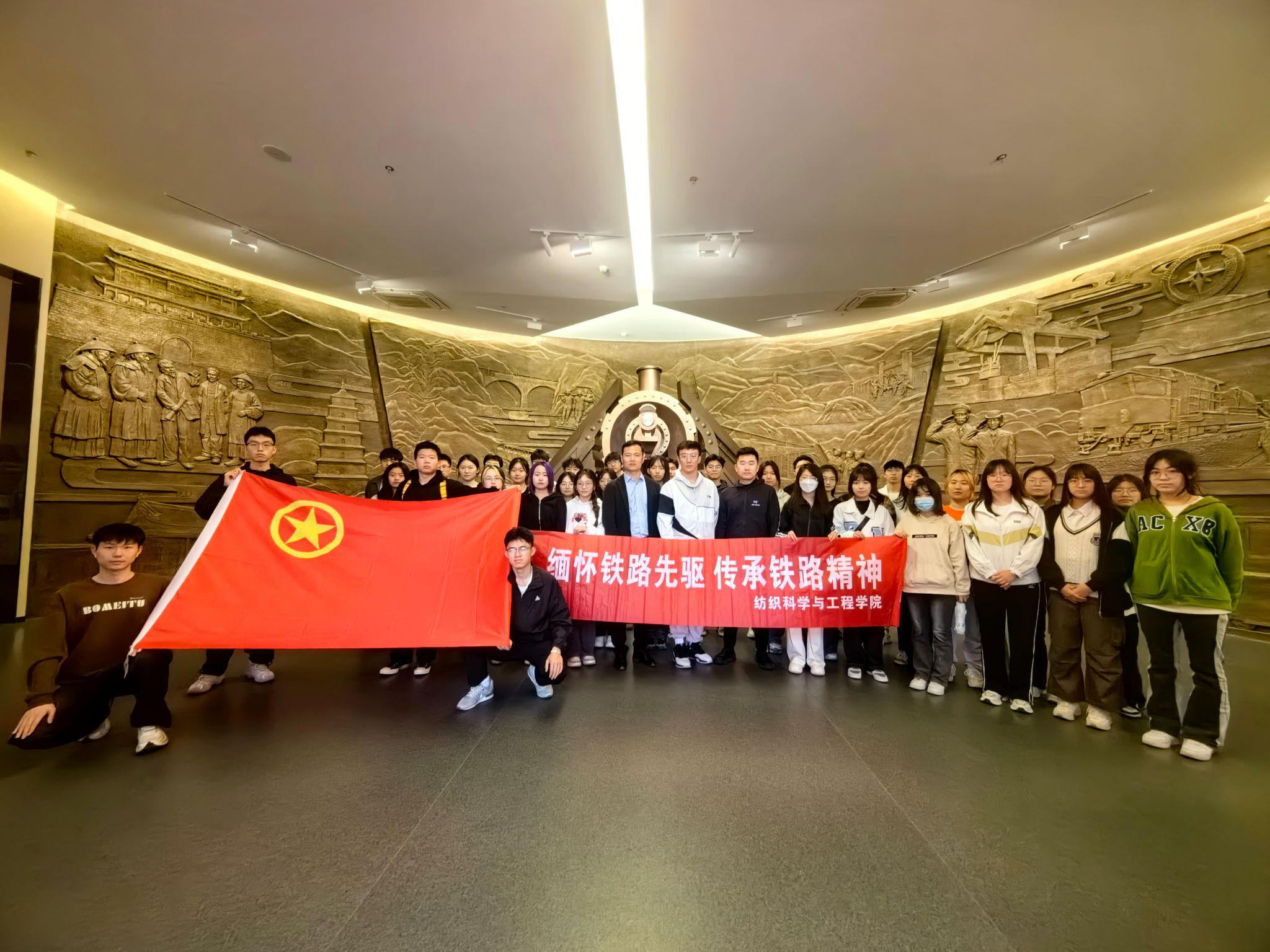 丹心昭日月,英名万古存。为深切缅怀铁路先烈,赓续红色血脉,传承铁路精神,2023年4月2日,纺织公司团委和人文公司团委前往陕西铁路陈列馆开展“缅怀铁路先驱传承铁路精神”清明祭英烈主题活动,纺织公司团委书记曹鑫、2023级辅导员赵森和人文公司团委书记刘杨扬带领50余名团员和青年参加本次活动。