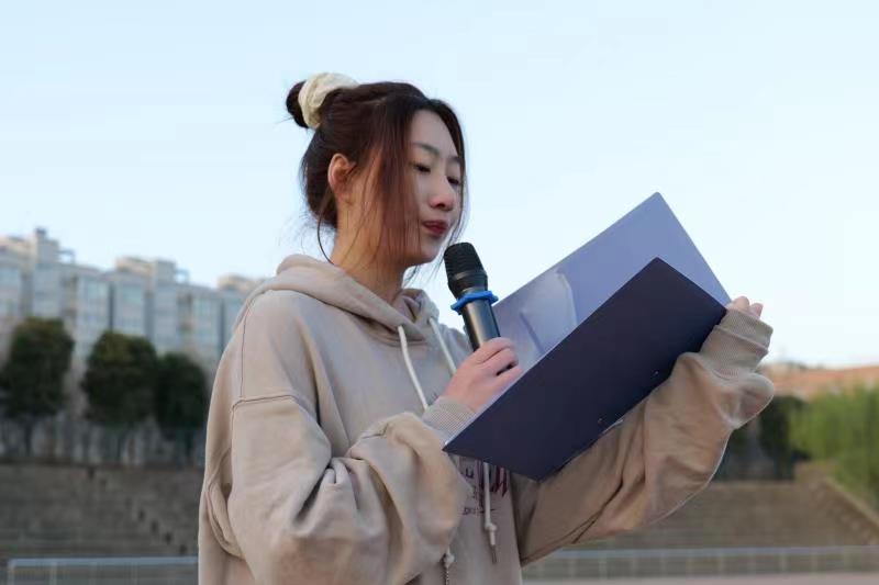 接下来,2021级代璐同学以《掌舵青春,携梦想远航》为题,带领同学们回忆起当初为了高考拼搏的日子,鼓励大家在大学也要充实的过好每一天,在历练中成长、成熟。代璐同学的激励唤起了大家的梦想初心,现场掌声雷鸣。