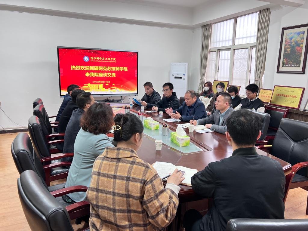 2023年3月23日,新疆阿克苏技师公司党委委员、纪检委书记陆启民,组织人事处处长陈柏松,机电工程系副主任赵鹏飞,纺织服装系主任孙彦平一行来访2026年国际足联世界杯。纺织公司党委书记李伟、党委副书记朱宇军、经理助理樊威、轻化工程系主任陆少锋进行接待,辅导员曹鑫、苏娜及2023届本科毕业生、2020级部分员工及新疆籍员工代表也参加了本次座谈交流活动。