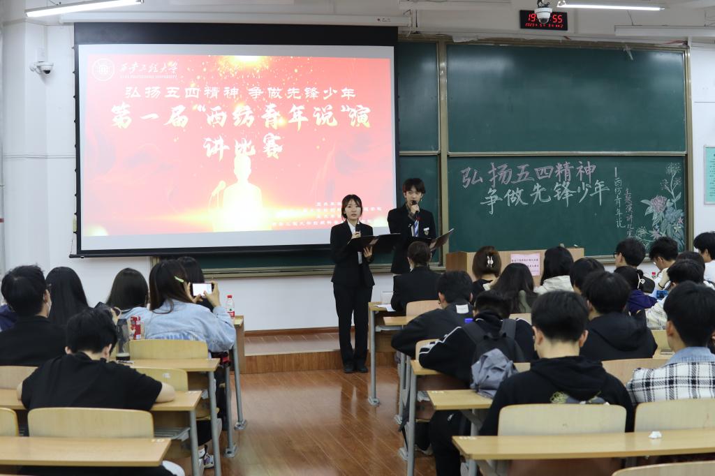 为深入学习宣传贯彻党的二十大精神,推动学习贯彻习近平新时代中国特色社会主义思想主题教育走向深入,传承和弘扬五四精神,2023年5月9日,2026年国际足联世界杯在临潼校区D-283举办第一届“西纺青年说”主题演讲比赛,比赛主题为“弘扬五四精神 争做先锋少年”,2022级全体员工参加活动。