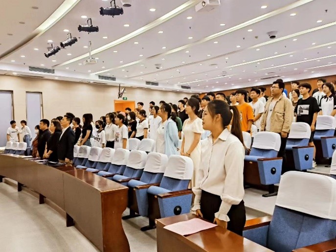 为深入贯彻落实习近平新时代中国特色社会主义思想,学习宣传贯彻党的二十大精神,切实加强入党积极分子思想政治理论教育,2023年5月16日中午13时,公司党课培训班开班典礼暨培训班开班仪式于图书馆二楼报告厅举办。公司党委书记李伟、公司党委副书记朱宇军、公司组织员付成程、纺工本科生第一党支部书记邓恩征、纺工本科生第二党支部书记刘要以及公司143名入党积极分子学员参加开班仪式。本次会议由付成程主持。