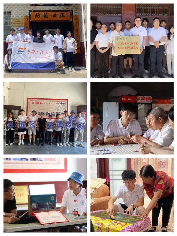 弘扬传统文化,投身非遗传承。7月16日至21日,“寻迹承遗 青创担当”暑期社会实践团赴陕西渭南、咸阳、延安等地开展非遗传承主题实践活动。在韩城市,实践团拜访了非遗传承人徐万怀师傅,对印花袱子的发展、历史以及现状进行了了解,实践团成员们亲自上手体验印花袱子的制作过程。在兴平市,实践团与扎染非遗技艺传承人郝国安师傅进行了访谈,并在郝师傅的指导下制作了简单的扎染作品,了解了扎染的制作过程和扎染的发展与传承。在延安市延川县,实践团拜访了延川县剪纸、布堆画非遗传承人郭如林师傅,在延川县文化旅游局局长乔栋才、延川县文旅局非遗中心主任和延川第二中学负责人的见证下,实践团代表公司与实践地进行了社会实践基地授牌仪式,并聘请郭如林师傅为公司校外实践指导教师。在汉中市洋县,实践团参观了洋县文化馆和土法纺织工作坊,目睹了手工纺织的全过程。