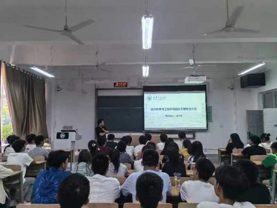 在孙经理介绍完之后,由纺织专业负责人谢光银教授和轻化专业负责人陆少锋教授分别给同学召开了专业介绍会。两位教授从专业学习、行业背景、学科发展和人生道路等方面做了精彩报告,为同学们解答了“专业学什么”、“怎么学专业”的问题,分享了自己的纺织情怀,并鼓励同学们树立远大志向、增长知识才干,努力成为高素质、高水平新纺织人才。