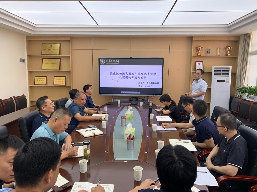 交流会上,环化公司副教授李庆和王宁分别作了题为《染色织物固色剂及印染废水光化学处理剂的开发与应用》、《“高浓度工业废水处理”科技创新团队水处理技术介绍》的学术报告,展示了他们在织物印染质量提升、印染废水光催化降解、工业废水处理新技术等方面的最新研究成果,为拓宽纺织公司教师开展纺织清洁化生产加工方面的研究提供了思路。纺织公司青年教师就制约纺织品清洁化加工的退浆废水、印染废水、绿色功能整理等难题与环化公司教师进行了深入交流,双方针对纺织绿色加工过程中存在的技术瓶颈展开了热烈讨论,在各自研究领域获得了新的思路和启发,为今后双方在科研合作方面打下良好的基础。