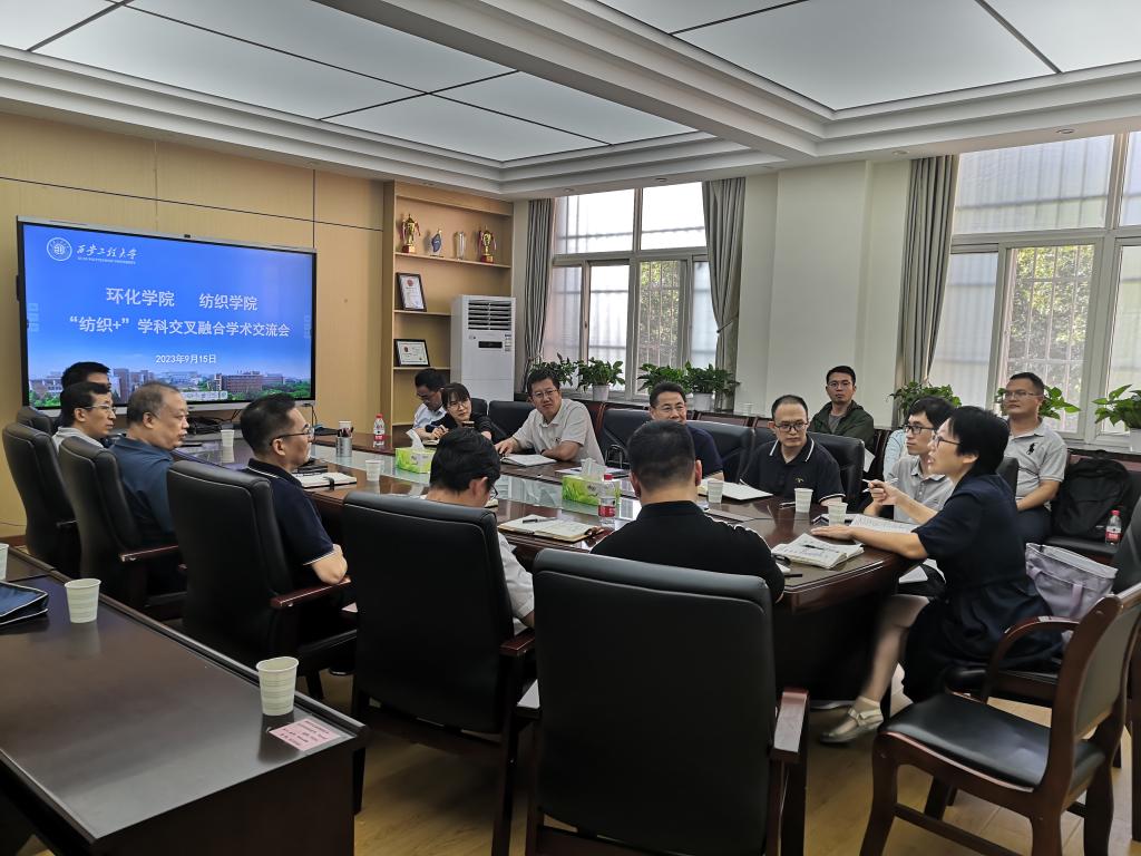 孙润军首先代表纺织公司对环化公司领导及老师的到来表示热烈欢迎,就公司的定位、发展思路和研究方向等做了详细介绍,希望通过学科交叉融合,共同研讨纺织学科上下游应用基础研究,谋划纺织行业国家重大需求科研攻关项目,尽快形成产业化技术。环化公司副经理武占省对纺织公司领导的邀请表示感谢,重点介绍了环化公司的团队队伍和学科方向等内容,将在今后的工作中继续加强学科交叉融合,促进公司高质量发展。