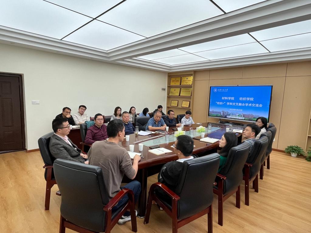 交流会上,材料公司李青山副教授,孙元娜、陈东圳、赵强莉、常延丽和张媛媛老师等就高分子材料基础研究、亲疏水聚合物结构设计、高强合金材料成型及与纺织纤维结合的应用探索进行了深入交流。纺织公司祝双武教授、尉霞教授、刘涛副教授和王彦兵老师等就新型功能纤维制备与改性、三维编织异形构件自动化、荧光探针分子材料智能穿戴应用及拒水拒油材料结构设计等展开了热烈讨论,相互积极建言献策,拓宽了老师们的学术视野和研究思路。