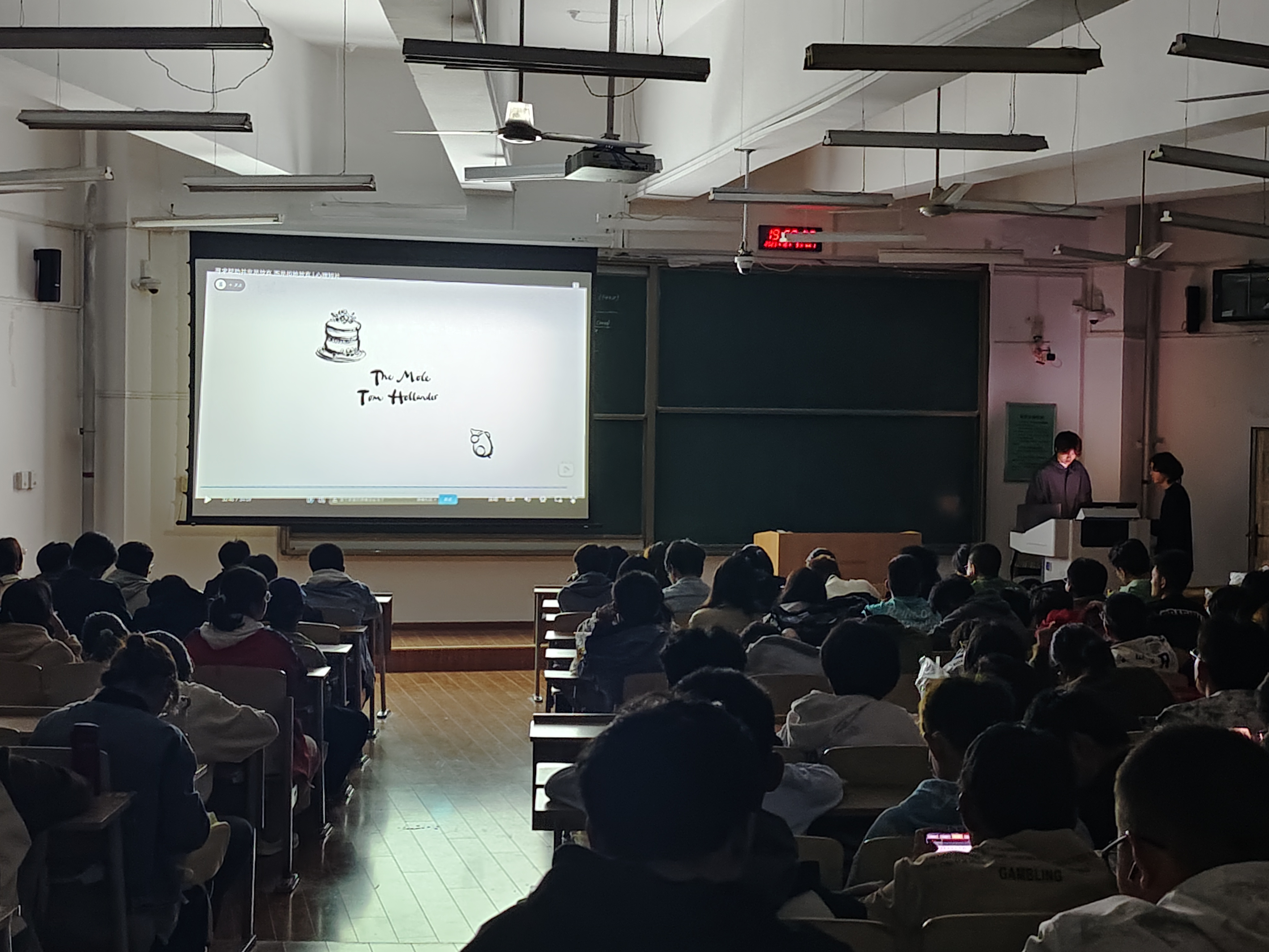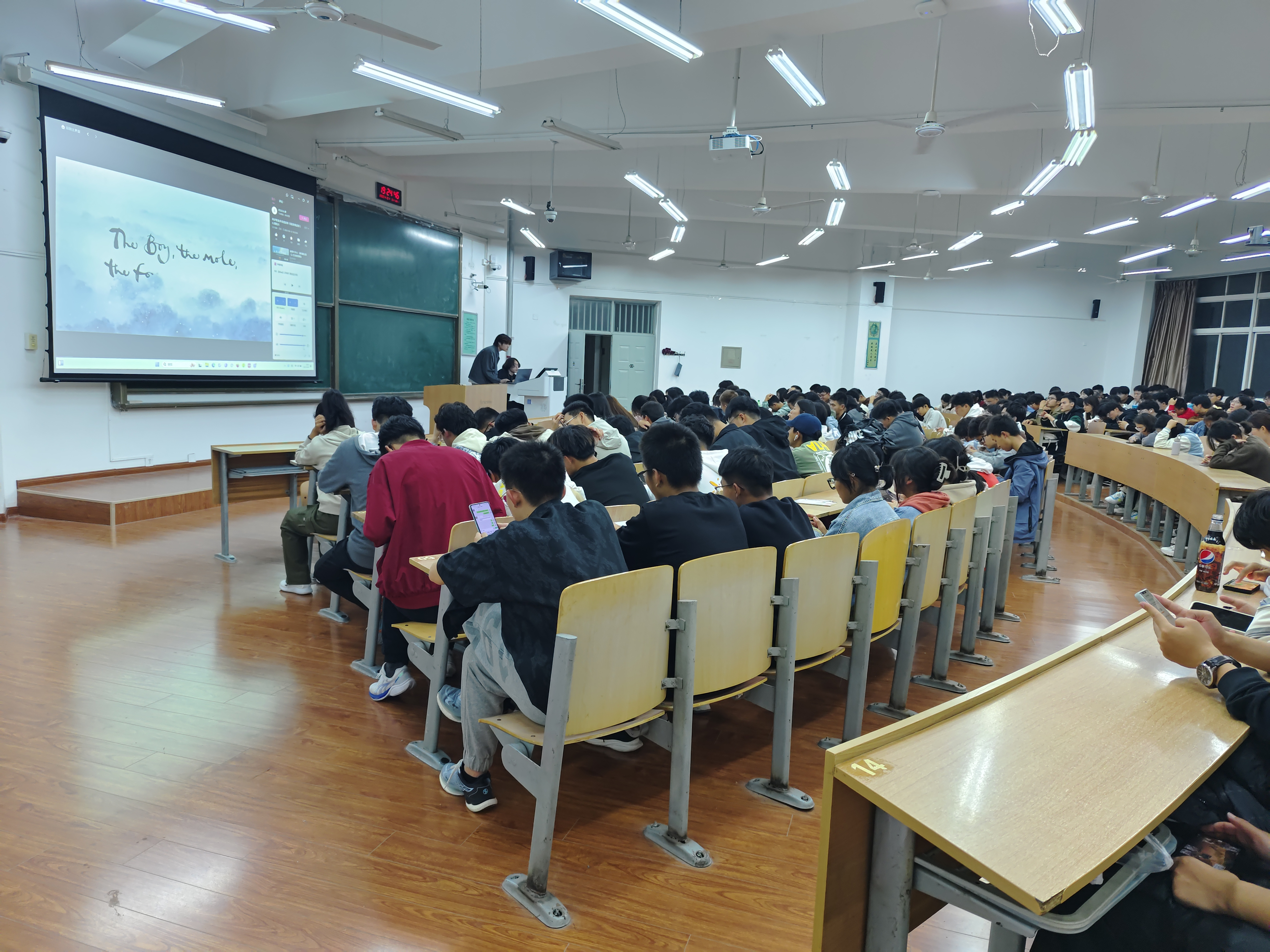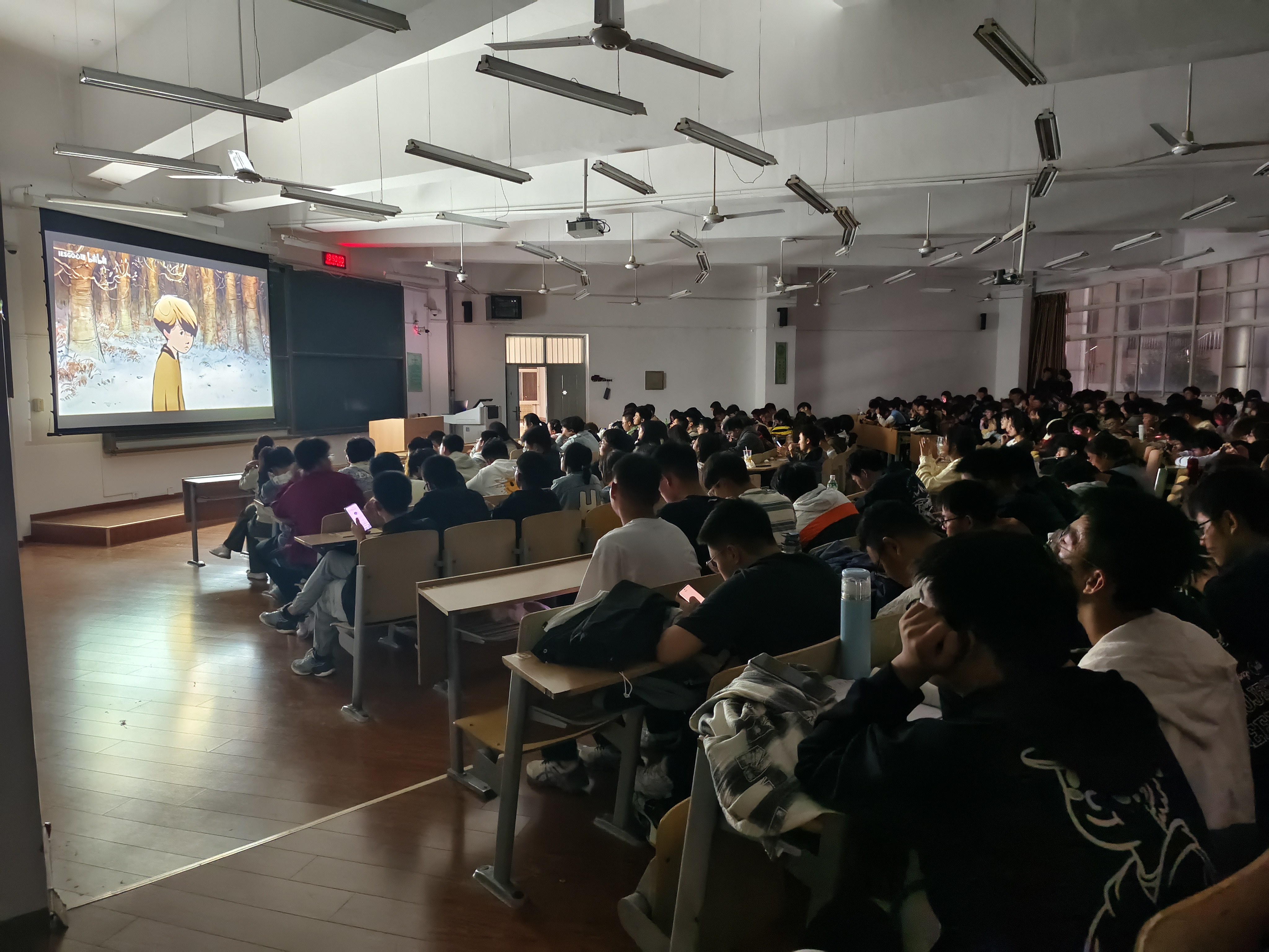 活动播放的影片为第95届奥斯卡金像奖最佳动画短片奖获奖影片《男孩,鼹鼠,狐狸和马》。这部影片以深入人心的方式探讨了成长、友情、爱和勇气等主题,传达了人生的真谛:即使在不完美中也能找到美好。故事讲述一个在森林中迷路的小男孩,在找寻回家道路上,陆续遇到鼹鼠、狐狸和马三个动物,四个孤独的灵魂成为好朋友的过程。他们经历了多种磨难,最终领悟人生和家庭的真谛,并在彼此身上找到自己存在的意义。作者用简单的笔画勾勒出了每个角色的形象,他们的形象和性格都非常鲜明,并且具有象征意义。鼹鼠是聪明的知识分子,狐狸是温柔的教母,马是强壮的领袖,而小男孩则是善良的灵魂。这些角色的交流、互动和情感表达让观众感到温馨和感动。观影过程中,同学们聚精会神,被生动精彩的情节深深吸引。