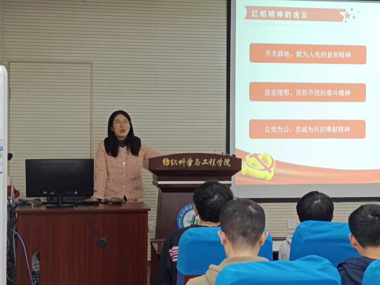 活动开始,付成程为同学们介绍了红船精神--1921年7月,嘉兴南湖,一只红船,扬起民族崛起的致远风帆;一个梦想,点燃伟大复兴的燎原之火。1921年8月初,中国共产党第一次全国代表大会在浙江嘉兴南湖的一条游船上胜利闭幕,庄严宣告中国共产党的诞生,这条游船因而获得了一个永载中国革命史册的名字--红船。付成程从红船精神的含义为同学们展开讲解,围绕红船的三大精神展开,有开天辟地、敢为人先的首创精神;坚定理想、百折不挠的奋斗精神;立党为公、忠诚为民的奉献精神。这些是红船精神的灵魂,是动力之源。
