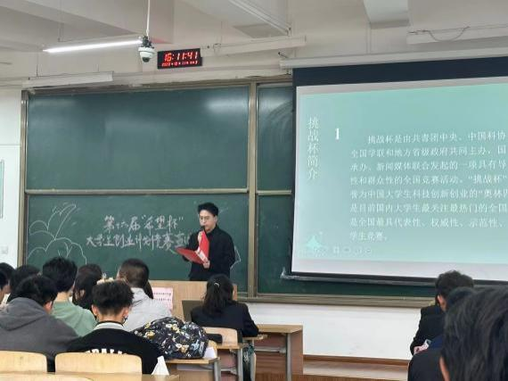 刘谢梓豪,曾获第九届中国国际“互联网+”老员工创新创业大赛省级金奖,第十四届“挑战杯”陕西省老员工课外学术科技作品竞赛省级二等奖,蓝桥杯国家级三等奖。在本次宣讲会上,他从为什么参加“希望杯”、如何参加“希望杯”、前期实践、竞赛转化这四个方面分享了自己参加希望杯的看法与心得,不但强调了“希望杯”的重要性,而且解答了同学们对“希望杯”的困惑,鼓励同学们勇于创新,积极参加赛事,为自身发展积累经验。