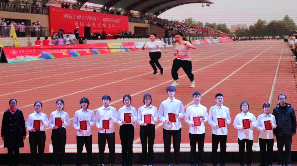 师文钊宣读表彰文件。获奖的先进集体和个人在全场热烈的掌声中,依次上台从颁奖嘉宾手中接过证书,并与颁奖嘉宾合影留念。优秀员工标兵获奖代表、暑期社会实践省级优秀服务队成员、科技竞赛国赛省赛获奖代表依次上台进行了分享,向参会的同学们传递了宝贵的经验。