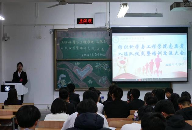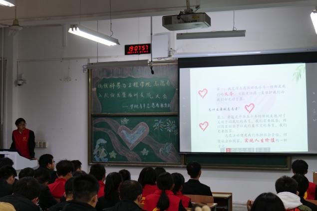 活动当晚,梦桃青年志愿者服务队成员们准时到场,在简单准备后,首先进行了新生志愿者入队仪式,服务队负责人向新成员授旗,新成员穿上象征爱心与责任的志愿服。接着进行志愿服务内容的讲解,让新成员明白如何更好的服务社会。