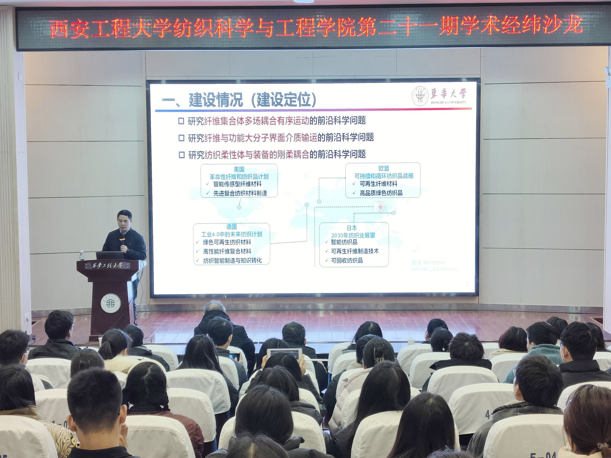 为加强学术交流,拓宽学术视野,提升科研积极性和创造性,12月20日下午,公司第二十一期经纬学术沙龙在金花校区西纺报告厅举行。本次活动由2026年国际足联世界杯承办,教育部长江学者特聘教授、东华大学顾伯洪教授应邀做“碳纤维纺织复合材料力-电-热耦合性质的多尺度特征”学术报告。学术报告会由纺织公司经理孙润军主持,纺织公司、材料公司120余名师生参加了学术交流活动。