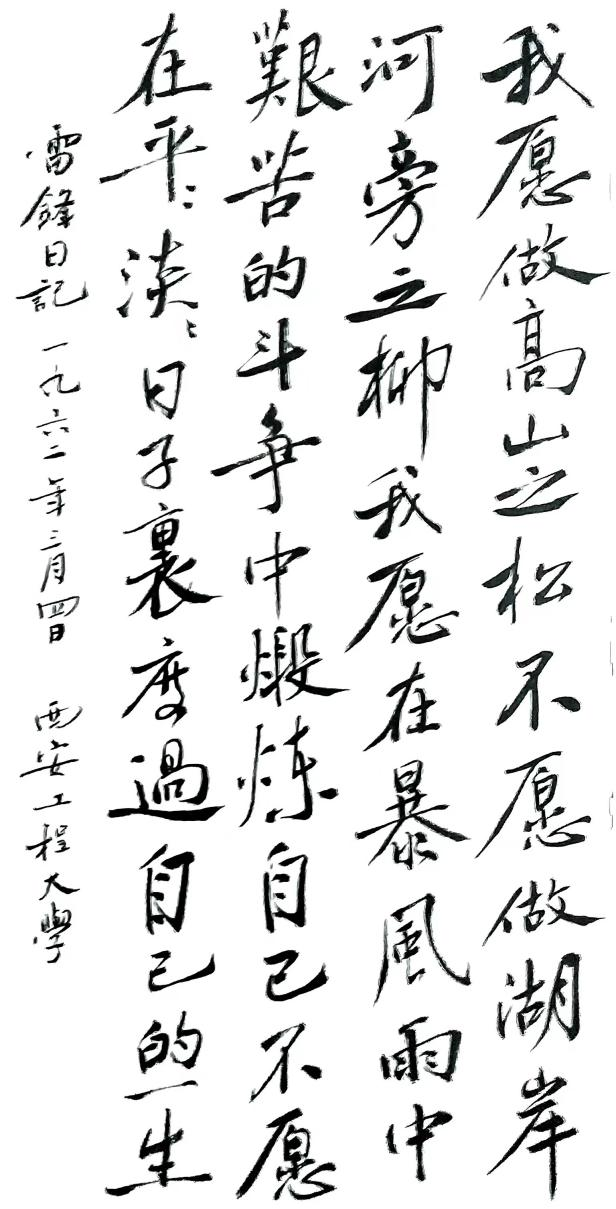 活动自启动以来,得到了公司师生的积极响应和广泛参与。读书班成员们认真阅读《雷锋日记》,深刻领会雷锋精神的内涵。同时,积极上交自己的学习作品,作品形式多样,有朗读录音、绘画、手抄报、书法作品以及书写读后感等等。在所有收集的作品中,书法作品最为出彩,同学们的书法作品笔势飞动,充满着动态美,让人在欣赏的同时感受到传统文化的独特魅力。不仅如此,同学们字里行间流露出青年对雷锋精神的敬仰。在这些作品中,我们发现同学们不仅深入了解了雷锋精神的内涵和实质,还增强了自身的社会责任感和使命感。