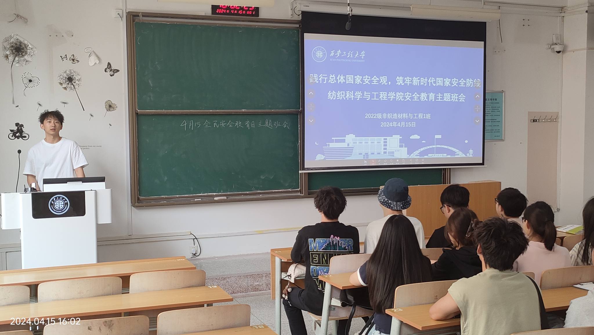 一是开展“国家安全教育”主题班会。4月15日,纺织公司2022级非织造材料与工程1班召开“国家安全教育”主题班会。班会课上,班长胡宇波带领同学们深入学习了国家安全的具体内涵与发展,深入研讨了《中华人民共和国国家安全法》第九条中有关国家安全的重要条例,以及学习了习近平总书记有关总体安全观的重要论述。有效帮助同学们树立了国家安全意识,提高了在日常学习和生活中自觉防范国家安全风险的思想觉悟,增强了同学们的政治素养、家国情怀和民族自豪感。