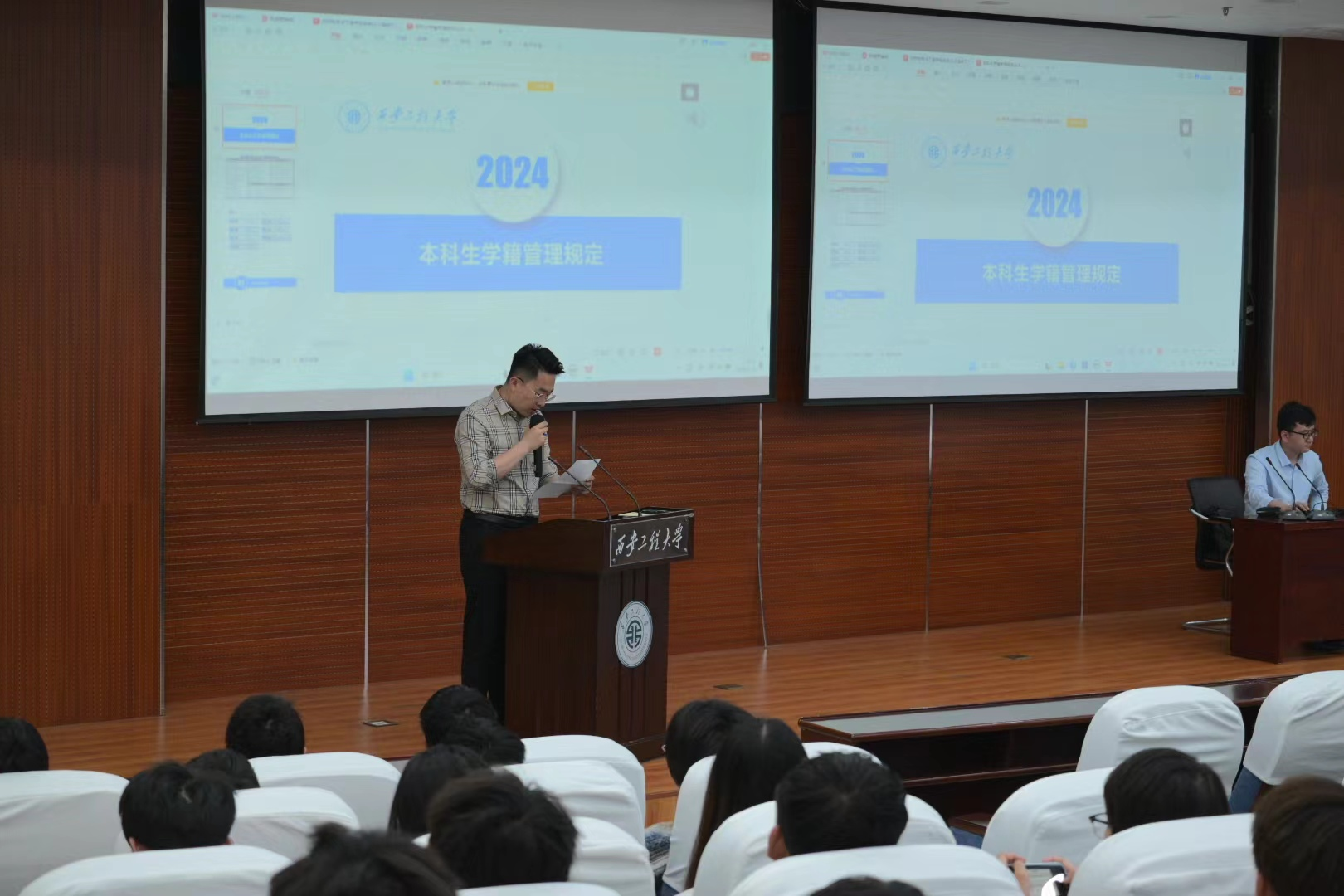 同时师经理结合2023级人才培养方案,从专业培养规划、课程设置、专业核心课程、实践环节、毕业条件等多维度出发,给新生做了全面而细致的介绍。最后,师经理还对公司的各项管理及规章制度做了介绍,并提出了一系列本科生四年学习规划的贴心建议。